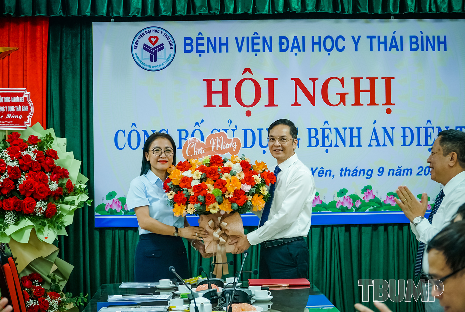 Tập thể lãnh đạo Nhà trường tặng hoa chúc mừng Bệnh viện Đại học Y Thái Bình