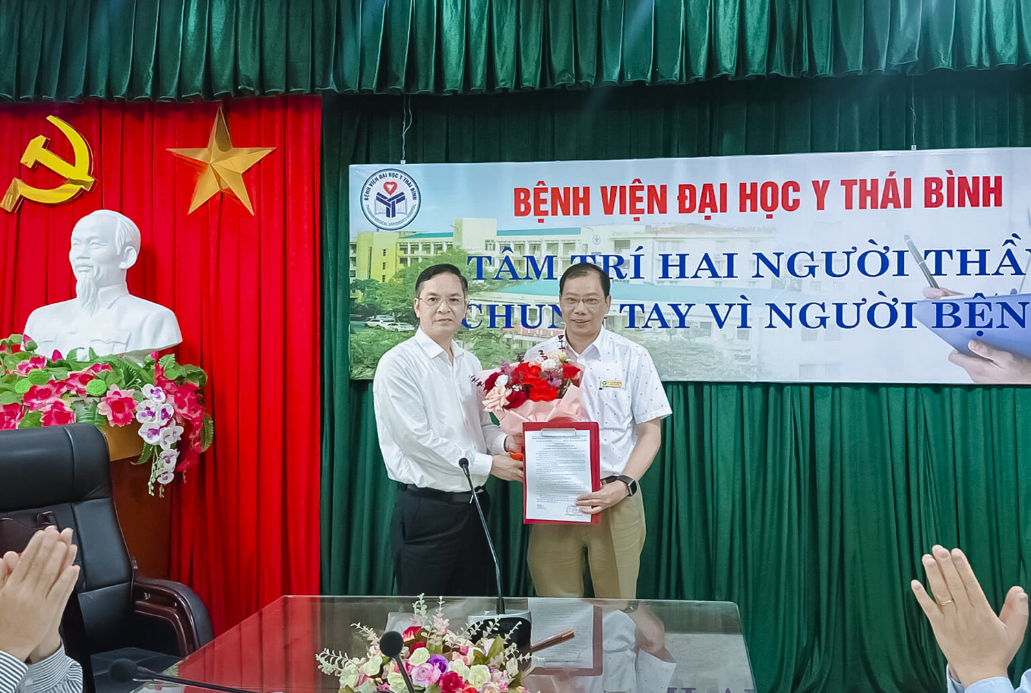 Chiều 06/4/2026, Ban Giám đốc Bệnh viện Đại học Y Thái Bình đã trao Quyết định giao nhiệm vụ phụ trách Khoa Khám bệnh đối với PGS.TS.BS Trần Thái Phúc.