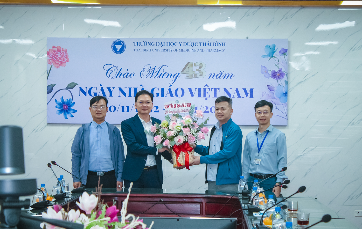 Thay mặt tuổi trẻ Nhà trường, ThS.BSNT Phạm Tuấn Đạt - Bí thư Đoàn thanh niên - Chủ tịch Hội sinh viên đã gửi những lời chúc mừng tốt đẹp nhất tới toàn thể các thế hệ thầy giáo, cô giáo, CBVC, người lao động Nhà trường nhân kỷ niệm ngày Hiến chương các nhà giáo 20/11. Với nhiệt huyết của tuổi trẻ, đoàn viên, sinh viên Trường Đại học Y Dược Thái Bình quyết tâm phấn đấu, rèn luyện, xứng đáng với truyền thống mái trường Anh hùng gần 60 năm xây dựng và trưởng thành.
