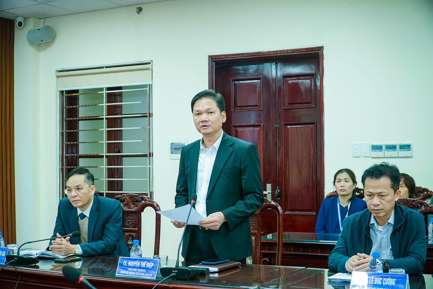 Thay mặt lãnh đạo Nhà trường, PGS.TS Nguyễn Quốc Tiến - Bí thư Đảng ủy; PGS.TS Nguyễn Duy Cường - Hiệu trưởng Nhà trường đã trao Quyết định và tặng hoa chúc mừng TS Vũ Duy Tùng. Đây không chỉ là niềm vinh dự mà còn là trọng trách đối với TS Vũ Duy Tùng trên cương vị công tác mới.