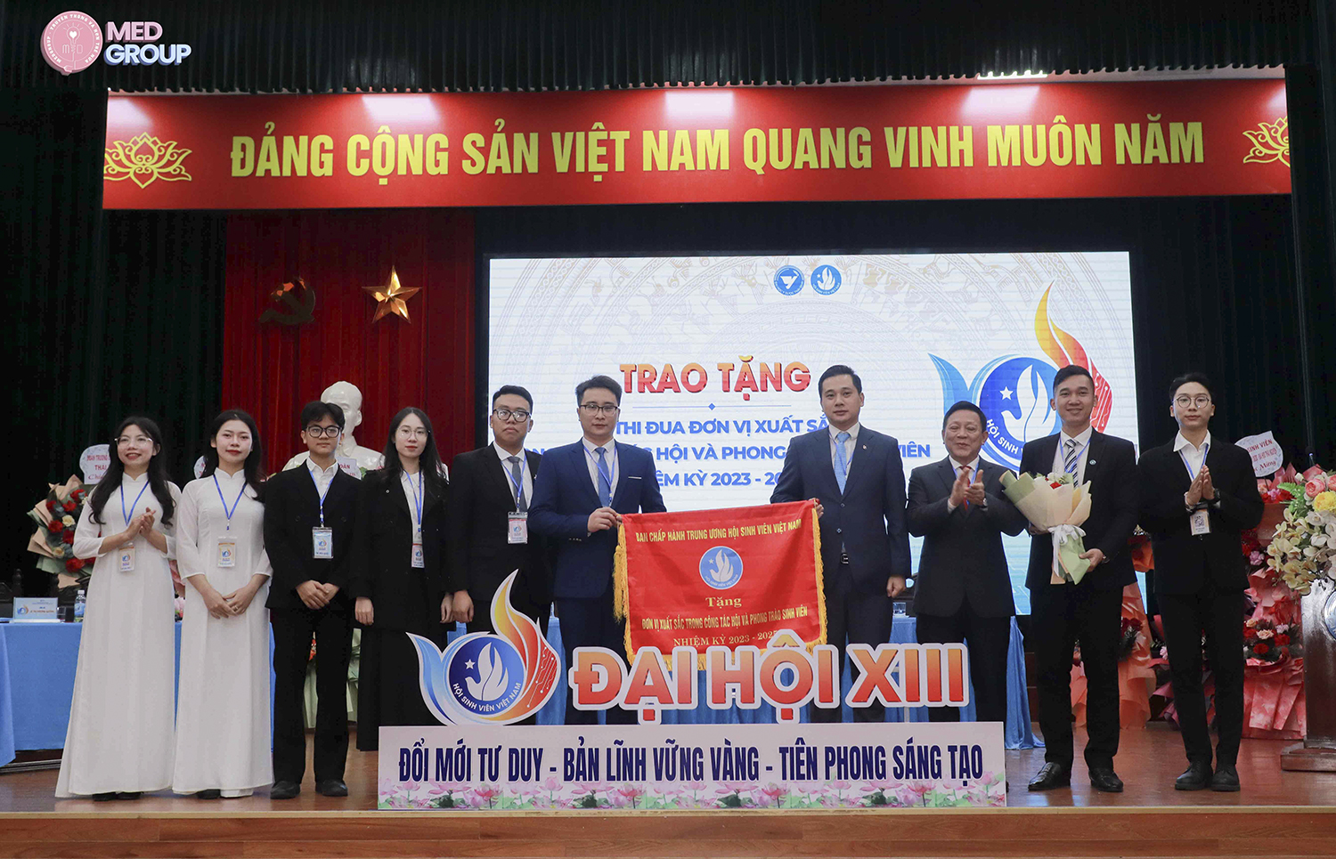 Đại diện Tỉnh đoàn, HLH thanh niên Việt Nam tỉnh, lãnh đạo, nguyên lãnh đạo Nhà trường chúc mừng Ban Chấp hành Hội sinh viên Trường Đại học Y Dược Thái Bình lần thứ XIII, nhiệm kỳ 2025-2028