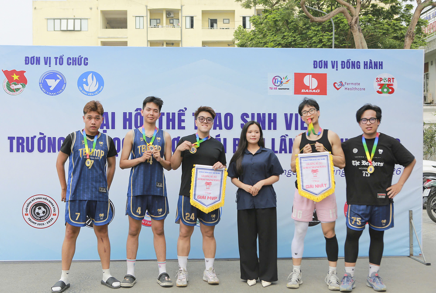 Các nội dung thi đấu diễn ra sôi nổi, hấp dẫn với nhiều bộ môn như bóng bàn, cầu lông, bóng chuyền, bóng rổ và bóng đá sinh viên. Ở môn bóng bàn, vận động viên Phạm Hải Trung xuất sắc giành giải Nhất nội dung đơn, đồng thời cùng đồng đội Lê Thùy Dung đạt giải Nhất nội dung đôi. Ở bộ môn cầu lông, nhiều cặp vận động viên đã thể hiện kỹ thuật và bản lĩnh thi đấu, mang đến những trận đấu chất lượng cao. Giải bóng chuyền King Cup 2026 ghi nhận chức vô địch thuộc về đội Y2, trong khi giải bóng rổ TBC 3x3 Qpen Cup 2026 gọi tên đội Lochoe Team với thành tích ấn tượng. Đại hội không chỉ là sân chơi thể thao mà còn là môi trường để sinh viên rèn luyện thể lực, nâng cao ý thức tổ chức kỷ luật, phát huy tinh thần đồng đội và bản lĩnh cá nhân, góp phần xây dựng phong trào “Sinh viên 5 tốt”.