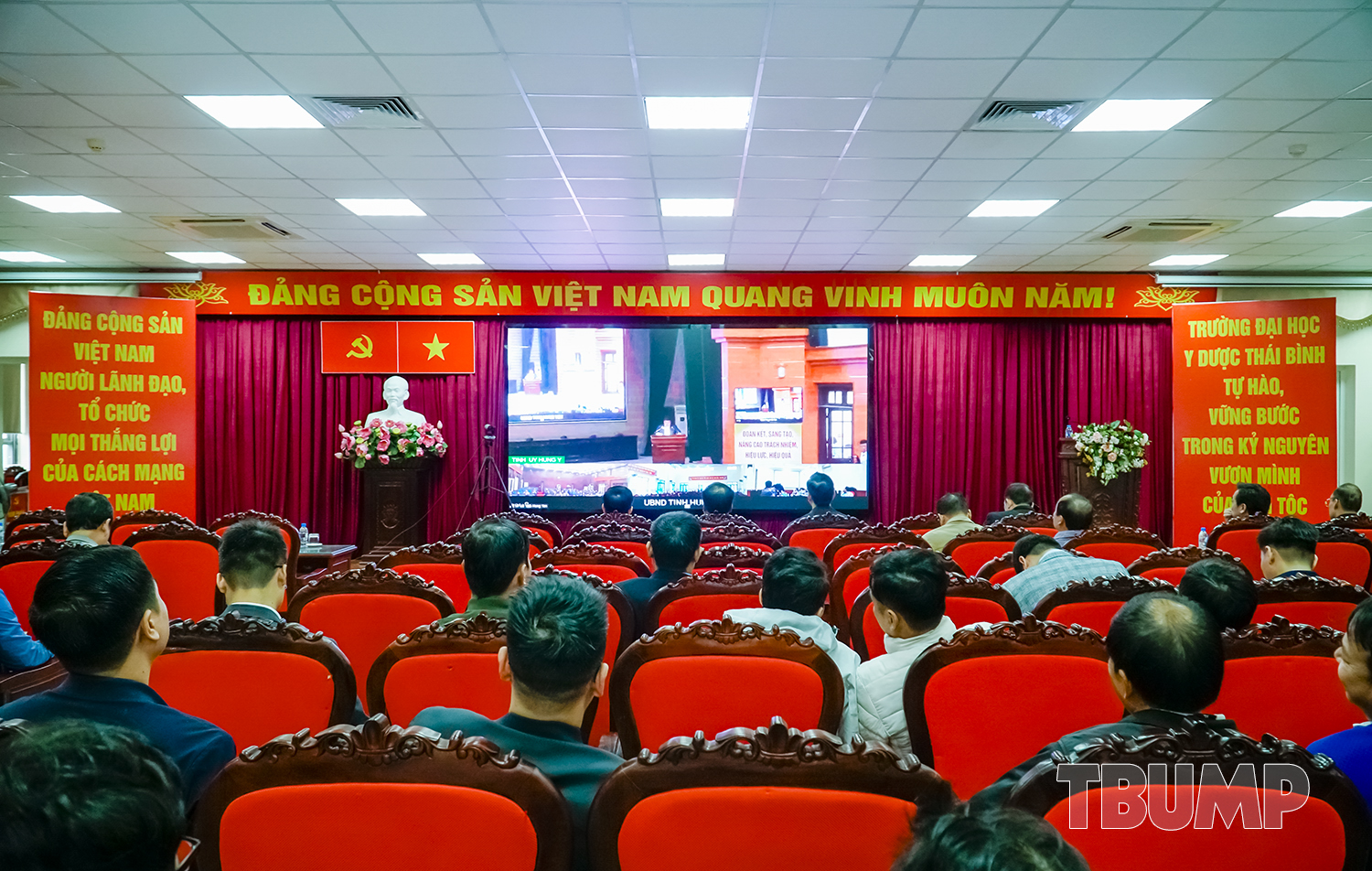 Dự Hội nghị tại điểm cầu Đảng ủy Trường Đại học Y Dược Thái Bình có đồng chí Nguyễn Quốc Tiến - Ủy viên BCH Đảng bộ UBND tỉnh Hưng Yên, Bí thư Đảng ủy Nhà trường; các đồng chí trong BCH Đảng ủy; Ban Chi ủy các chi bộ; BTV Công đoàn Trường; BTV Đoàn thanh niên, Ban Thư ký Hội sinh viên. Tham dự Hội nghị còn có các đồng chí là trưởng (phụ trách); phó trưởng các đơn vị, cùng toàn thể đảng viên trong toàn Trường.