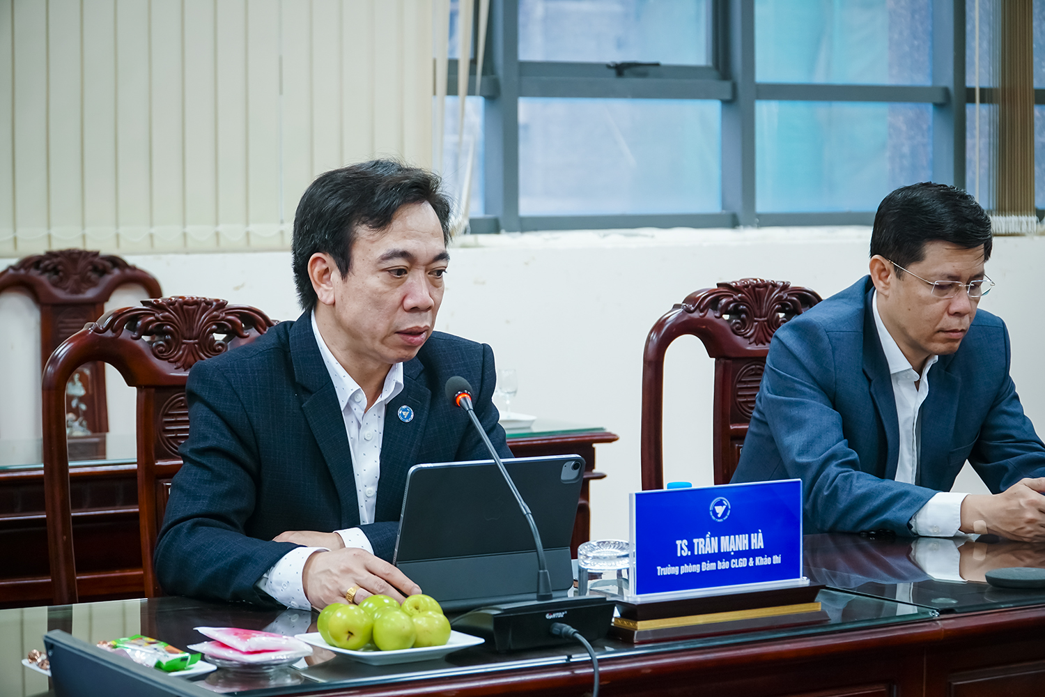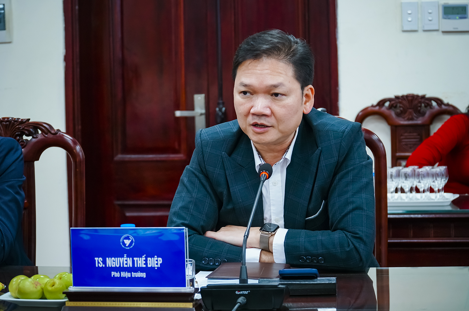 Phát biểu tại buổi gặp mặt, PGS.TS Nguyễn Quốc Tiến – Bí thư Đảng ủy ghi nhận và biểu dương những nỗ lực của Tập thể lãnh đạo, cùng toàn thể CBVC, người lao động Nhà trường trong năm qua. Đồng chí nhấn mạnh, năm 2026, Tập thể lãnh đạo cùng các đơn vị chức năng cần tiếp tục đổi mới phương thức làm việc theo hướng chuyên nghiệp, hiện đại; nâng cao chất lượng tham mưu, bảo đảm tiến độ, chất lượng các nhiệm vụ trọng tâm của Nhà trường; đẩy mạnh ứng dụng công nghệ thông tin, chuyển đổi số trong xử lý công việc; tăng cường kỷ luật, kỷ cương hành chính, xây dựng đội ngũ cán bộ “vừa hồng, vừa chuyên”, đáp ứng yêu cầu nhiệm vụ trong giai đoạn phát triển mới.