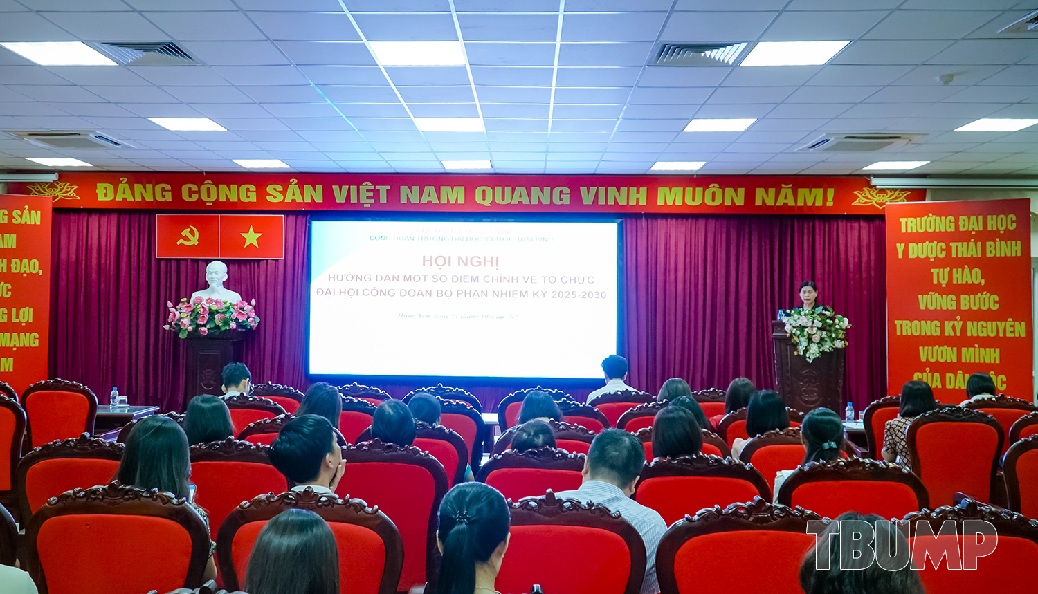 Ngày 21/10/2025, Công đoàn Trường Đại học Y Dược Thái Bình đã tổ chức Hội nghị Ban chấp hành Công đoàn mở rộng để triển khai các nhiệm vụ trọng tâm 3 tháng cuối năm và hướng dẫn nghiệp vụ công tác tổ chức Đại hội Công đoàn bộ phận nhiệm kỳ 2025 - 2030. Hội nghị có sự tham dự của Ban chấp hành Công đoàn Trường và trên 70 cán bộ công đoàn chủ chốt đại diện cho 688 công đoàn viên đến từ 29 Công đoàn trực thuộc. TS. Trần Mạnh Hà - UVBCH Công đoàn Y tế Việt Nam, Chủ tịch Công đoàn Trường chủ trì Hội nghị.