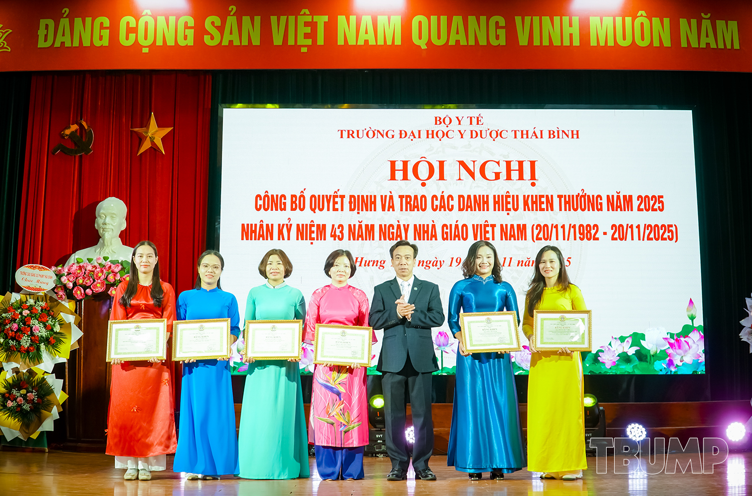 Nhân dịp kỷ niệm ngày Nhà giáo Việt Nam 20/11, chiều ngày 19/11/2025, Trường Đại học Y Dược Thái Bình đã tổ chức Hội nghị công bố Quyết định và trao các danh hiệu hiệu khen thưởng năm 2025.