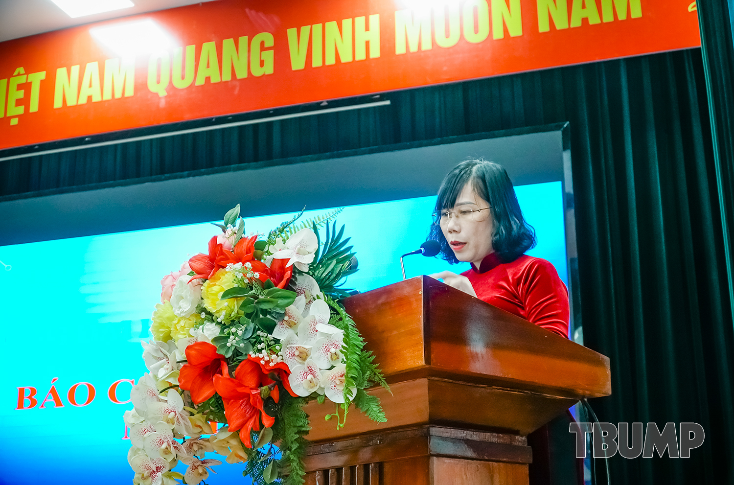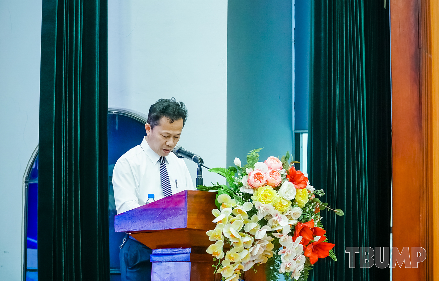 TS Trần Mạnh Hà - Chủ tịch Công đoàn Trường báo cáo kết quả tổ chức Hội nghị CBVC, NLĐ ở cơ sở, tổng hợp ý kiến và báo cáo kết quả thực hiện Nghị quyết Hội nghị CBVC năm 2024.