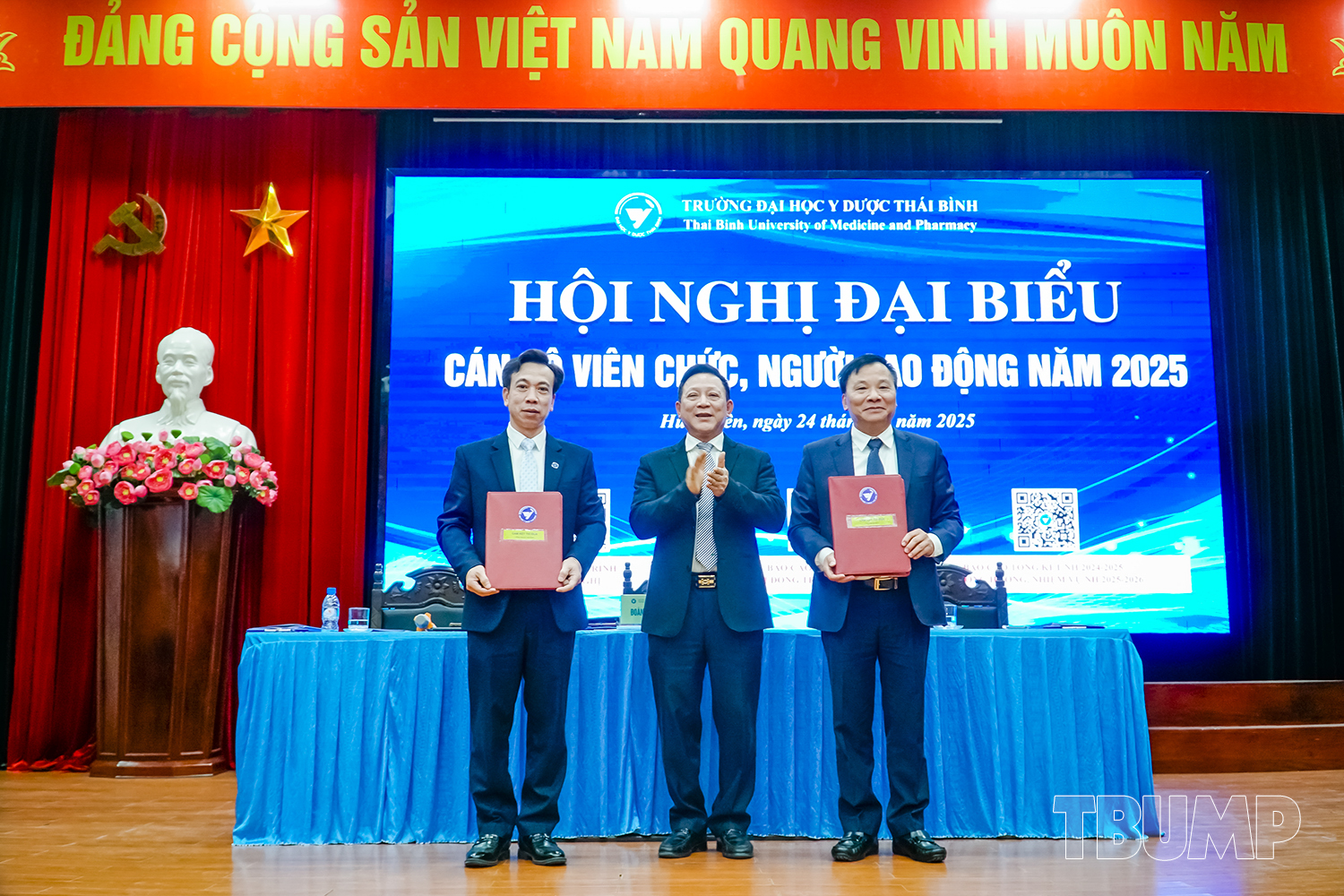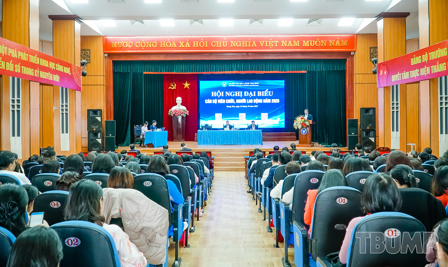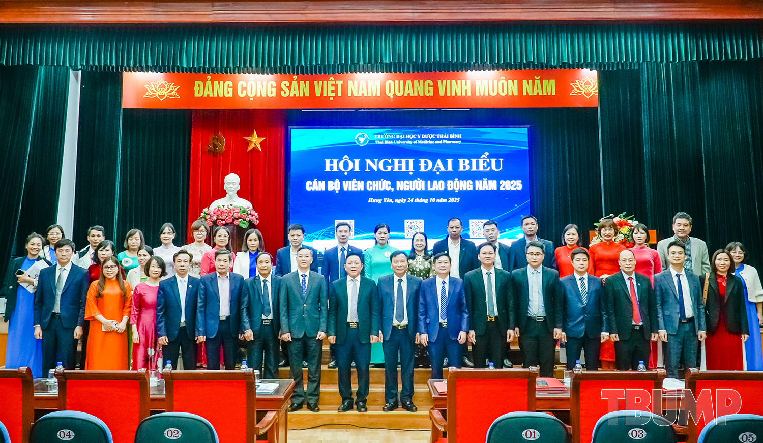 Thực hiện kế hoạch năm học 2025-2026, ngày 24 tháng 10 năm 2025, Trường Đại học Y Dược Thái Bình đã long trọng tổ chức Hội nghị đại biểu cán bộ viên chức, người lao động (CBVC, NLĐ) năm 2025. Đây là hội nghị thường niên được tổ chức sau khi hoàn thành Hội nghị CBVC, NLĐ tại các đơn vị cơ sở, nhằm phát huy quyền dân chủ, trí tuệ tập thể, góp phần nâng cao hiệu quả hoạt động và xây dựng Nhà trường ngày càng phát triển bền vững.