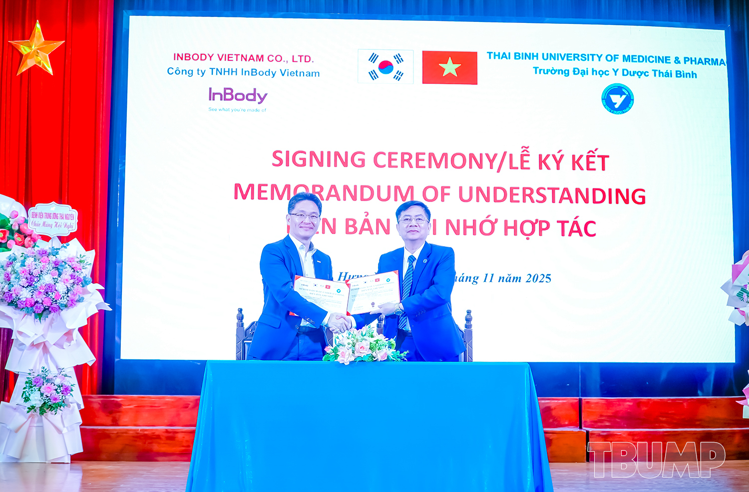 Trong khuôn khổ hội nghị, Trường Đại học Y Dược Thái Bình và công ty TNHH Inbody Việt Nam đã ký kết biên bản ghi nhớ (MOU) về hợp tác trong đào tạo và nghiên cứu khoa học, mở ra nhiều cơ hội thúc đẩy ứng dụng công nghệ hiện đại trong đánh giá thể trạng và chăm sóc dinh dưỡng.