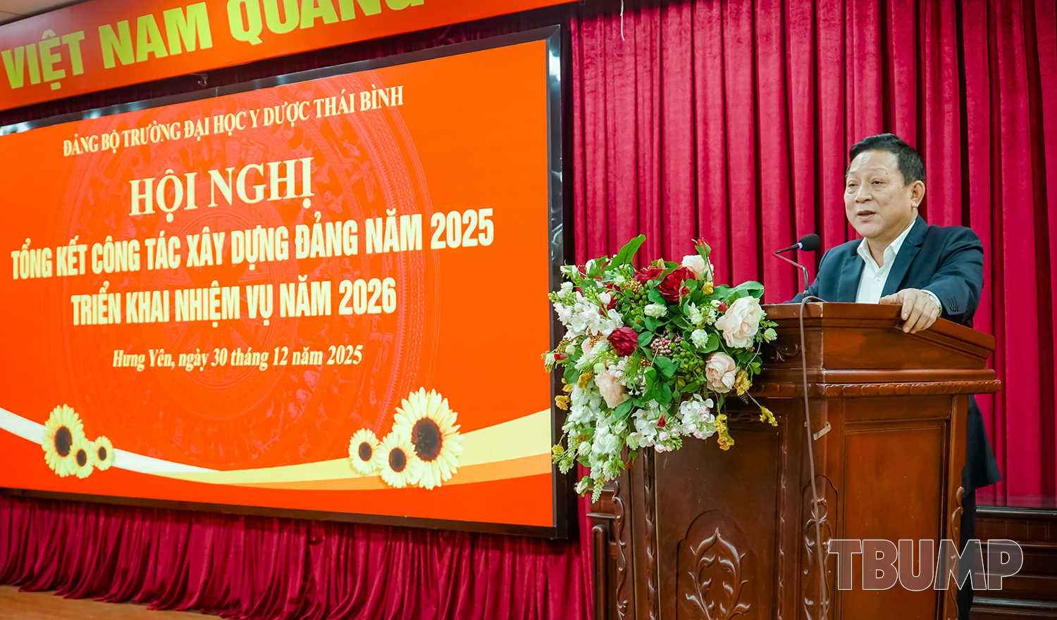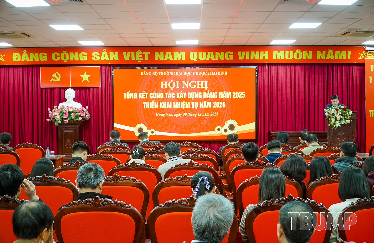 Trong không khí thi đua sôi nổi hướng tới chào mừng Đại hội đại biểu toàn quốc lần thứ XIV của Đảng, ngày 30/12/2025, Đảng bộ Trường Đại học Y Dược Thái Bình đã tổ chức Hội nghị tổng kết công tác xây dựng Đảng năm 2025 và triển khai phương hướng, nhiệm vụ năm 2026.