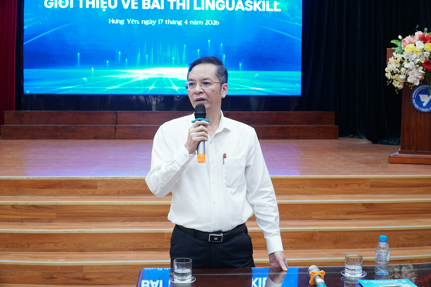 Linguaskill - bài thi tiếng Anh trực tuyến được cấp chứng chỉ có hiệu lực vĩnh viễn, đã được phê duyệt liên kết tổ chức thi tại Trường Đại học Y Dược Thái Bình. Để phổ biến thông tin đầy đủ, chính xác và cập nhật về chứng chỉ với nhiều ưu điểm này, sáng ngày 17/4/2026, Trường Đại học Y Dược Thái Bình phối hợp với Công ty Cổ phần Nghiên cứu, Ứng dụng và Thực nghiệm Công nghệ REAP tổ chức hội thảo Giới thiệu về bài thi Linguaskill với hơn 300 đại biểu tham dự.