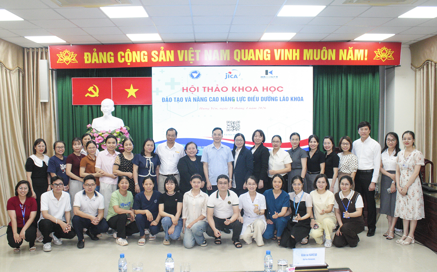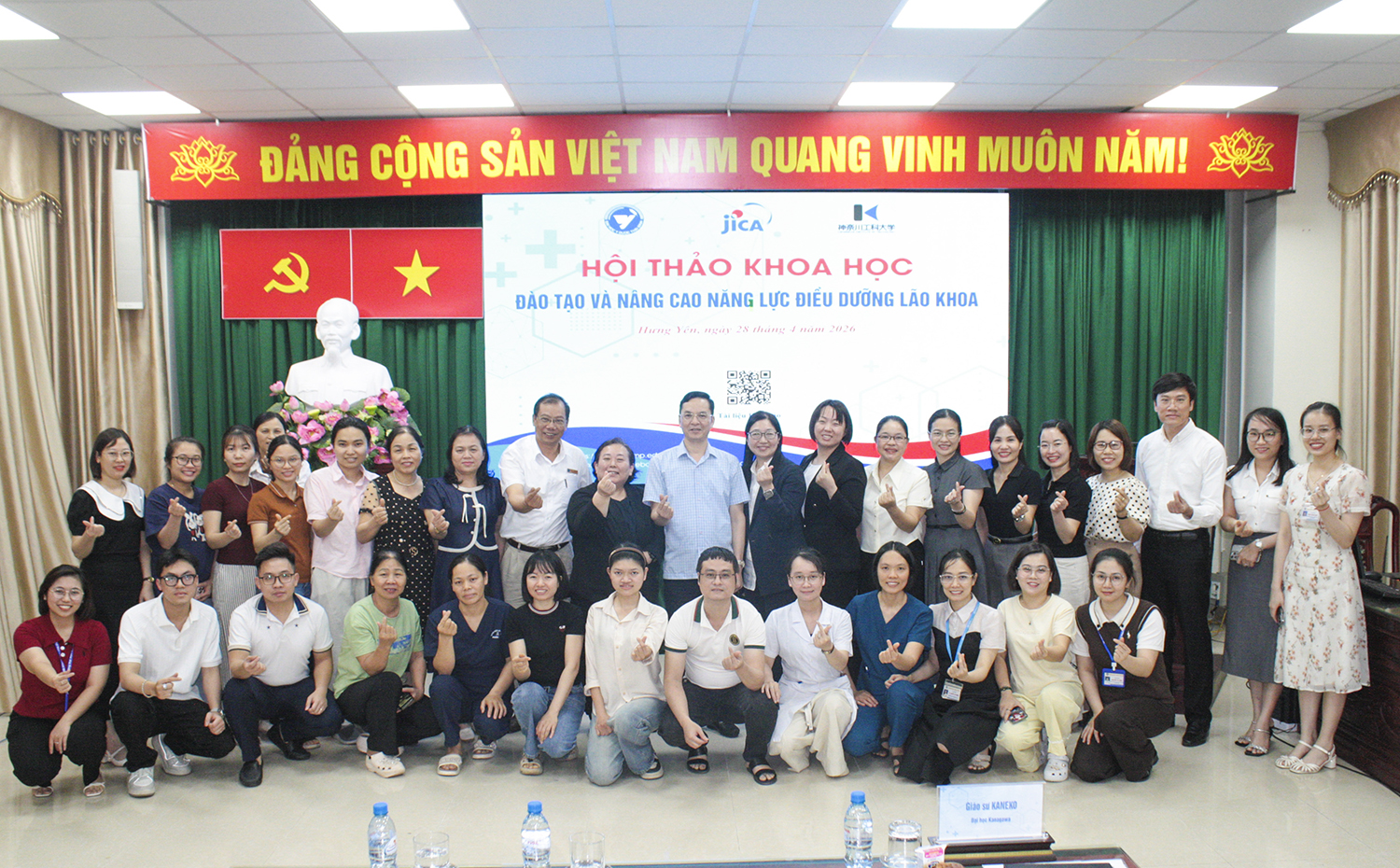Trong khuôn khổ chuyến thăm và làm việc của đoàn công tác Trường Đại học Công nghệ Kanagawa (Nhật Bản) tại Trường Đại học Y Dược Thái Bình, với sự tài trợ của Cơ quan Hợp tác Quốc tế Nhật Bản (JICA), chiều ngày 28/4/2026, Hội thảo khoa học “Nâng cao năng lực điều dưỡng lão khoa cho các điều dưỡng viên” đã được tổ chức với chủ đề “Tầm quan trọng của điều dưỡng và nâng cao năng lực chăm sóc người cao tuổi”.