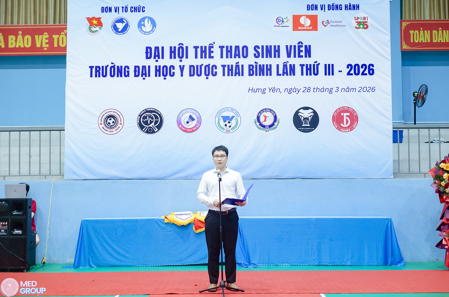 Phát biểu khai mạc Đại hội, ThS Phạm Tuấn Đạt – Bí thư Đoàn Thanh niên, Chủ tịch Hội Sinh viên khẳng định, những năm qua, phong trào thể dục thể thao của sinh viên Trường Đại học Y Dược Thái Bình ngày càng phát triển mạnh mẽ, trở thành một trong những điểm sáng trong công tác Đoàn và phong trào sinh viên. Đại hội Thể thao không chỉ là dịp để rèn luyện sức khỏe mà còn góp phần xây dựng môi trường học tập năng động, sáng tạo, giúp sinh viên cân bằng giữa học tập và rèn luyện thể chất.