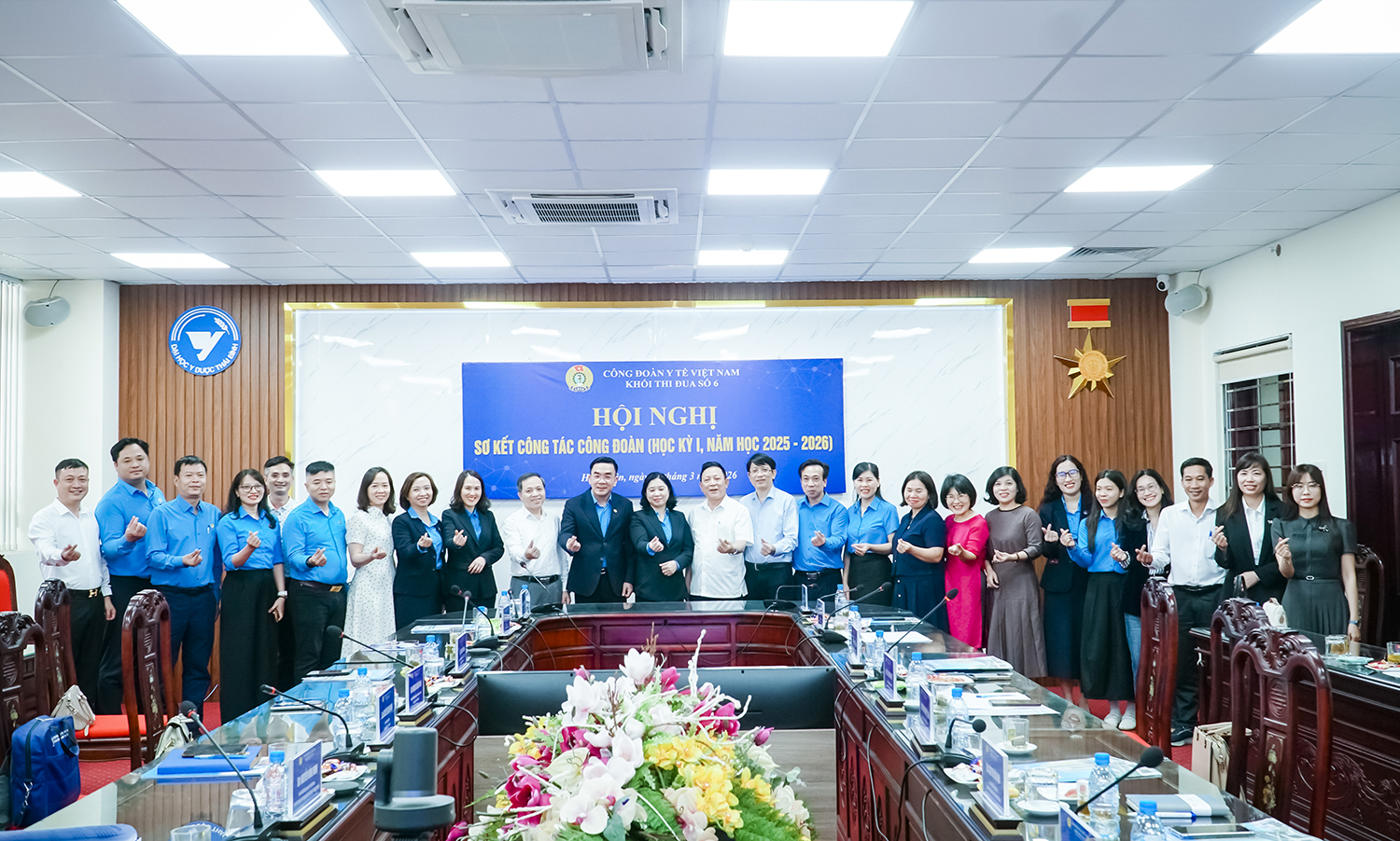Thực hiện Kế hoạch số 01/KH-KTĐ của Khối thi đua số 6, Công đoàn Y tế Việt Nam; ngày 20/3/2026, Khối thi đua số 6 tổ chức Hội nghị sơ kết công tác Công đoàn học kỳ I, năm học 2025 - 2026 tại Trường Đại học Y Dược Thái Bình.