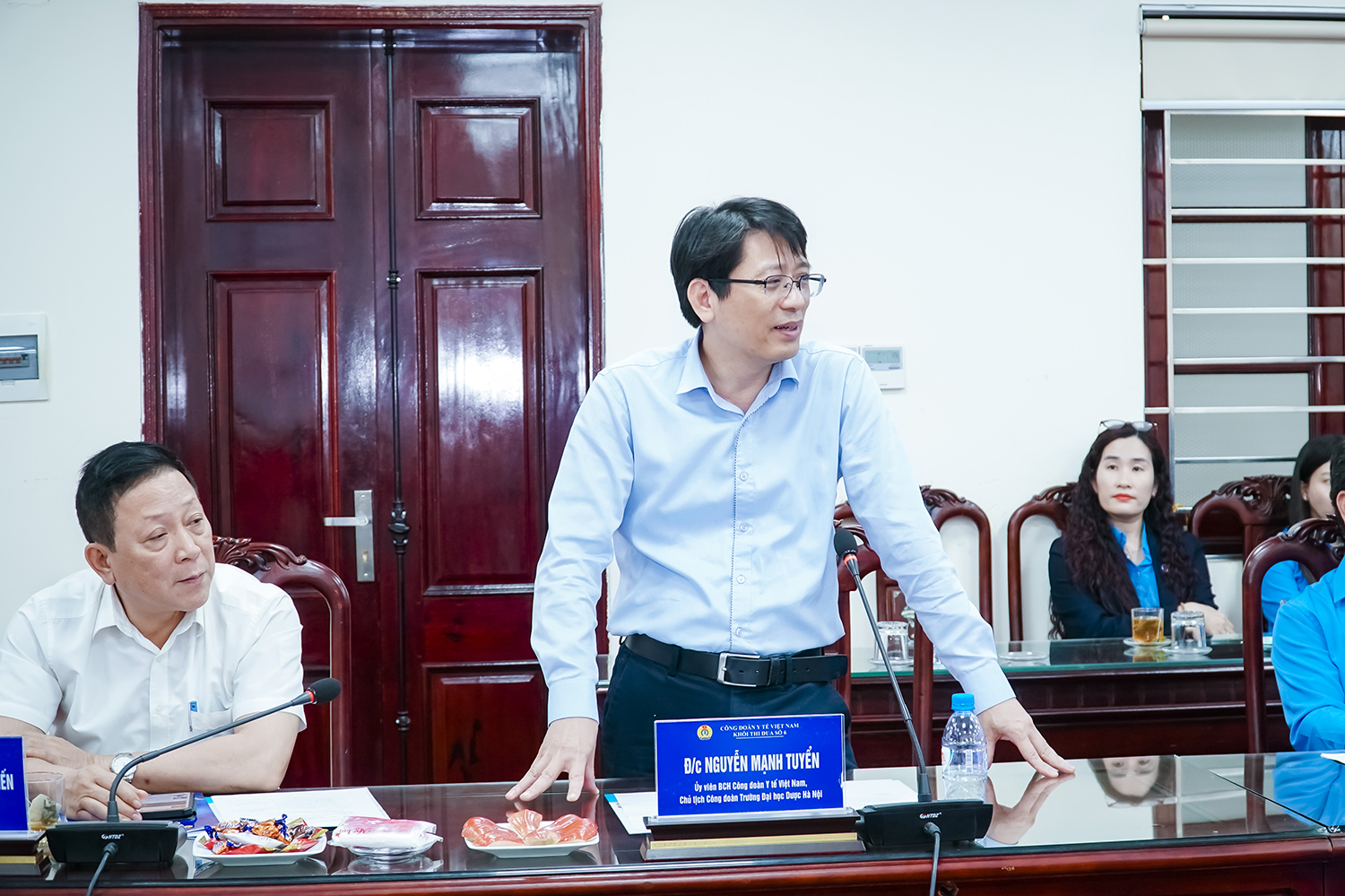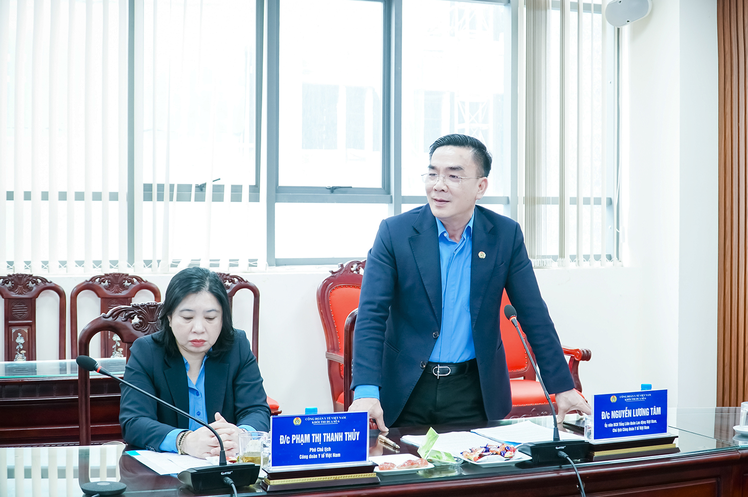 Phát biểu chỉ đạo Hội nghị, đồng chí Nguyễn Lương Tâm - Ủy viên BCH Tổng Liên đoàn Lao động Việt Nam, Chủ tịch Công đoàn Y tế Việt Nam ghi nhận và đánh giá cao những kết quả mà Công đoàn Khối thi đua số 6 đã đạt được trong học kỳ I năm học 2025-2026; đồng thời biểu dương tinh thần chủ động, sáng tạo của các đơn vị trong việc triển khai các hoạt động công đoàn thiết thực, hiệu quả. Đồng chí đặc biệt nhấn mạnh vai trò, tầm quan trọng của tổ chức Công đoàn trong mỗi cơ quan đơn vị, đồng thời mong muốn tổ chức Công đoàn cơ sở phải được sự quan tâm, tham gia, đồng hành của chính quyền trong mọi hoạt động. Đồng chí đề nghị trong thời gian tới, các đơn vị tiếp tục phát huy kết quả đã đạt được, bám sát chỉ đạo của Công đoàn cấp trên, đẩy mạnh đổi mới nội dung, phương thức hoạt động, góp phần thực hiện tốt nhiệm vụ chính trị của mỗi đơn vị.