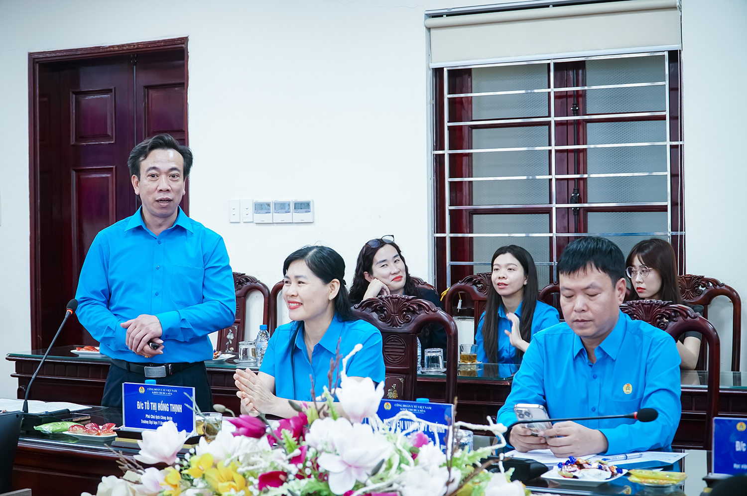 Tại Hội nghị, đồng chí Chủ tịch Công đoàn Trường Đại học Y Dược Thái Bình - Khối trưởng đã trình bày tóm tắt Báo cáo sơ kết công tác công đoàn Khối học kỳ I và phương hướng hoạt động học kỳ II năm học 2025 - 2026.