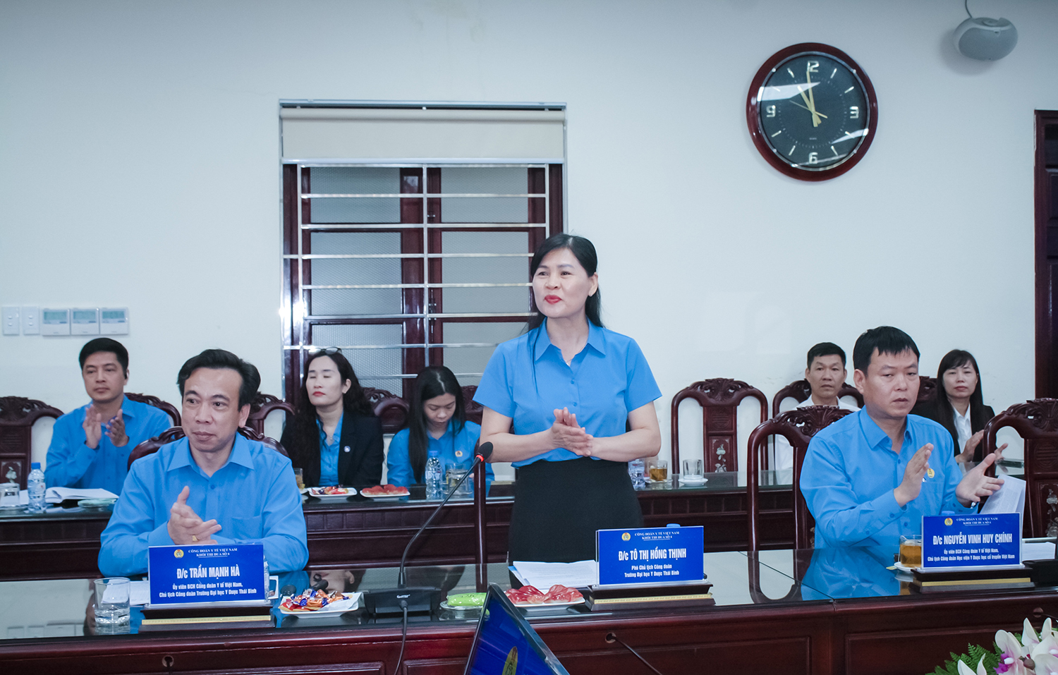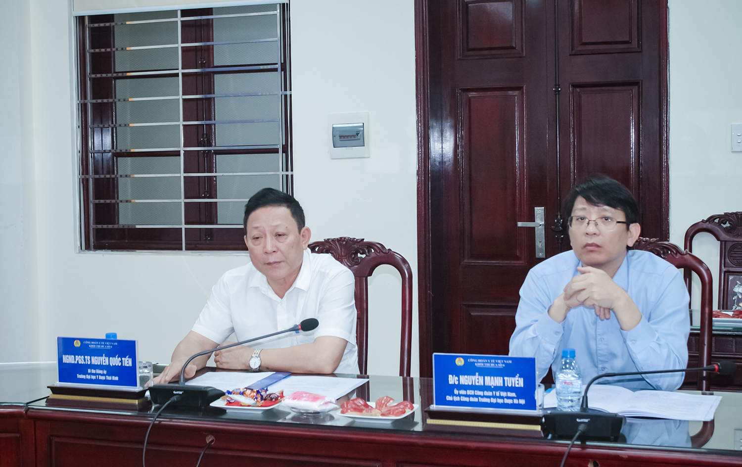 Về phía Trường Đại học Y Dược Thái Bình có: NGND.PGS.TS Nguyễn Quốc Tiến - Bí thư Đảng uỷ, cùng các đồng chí trong BCH Công đoàn Trường.
