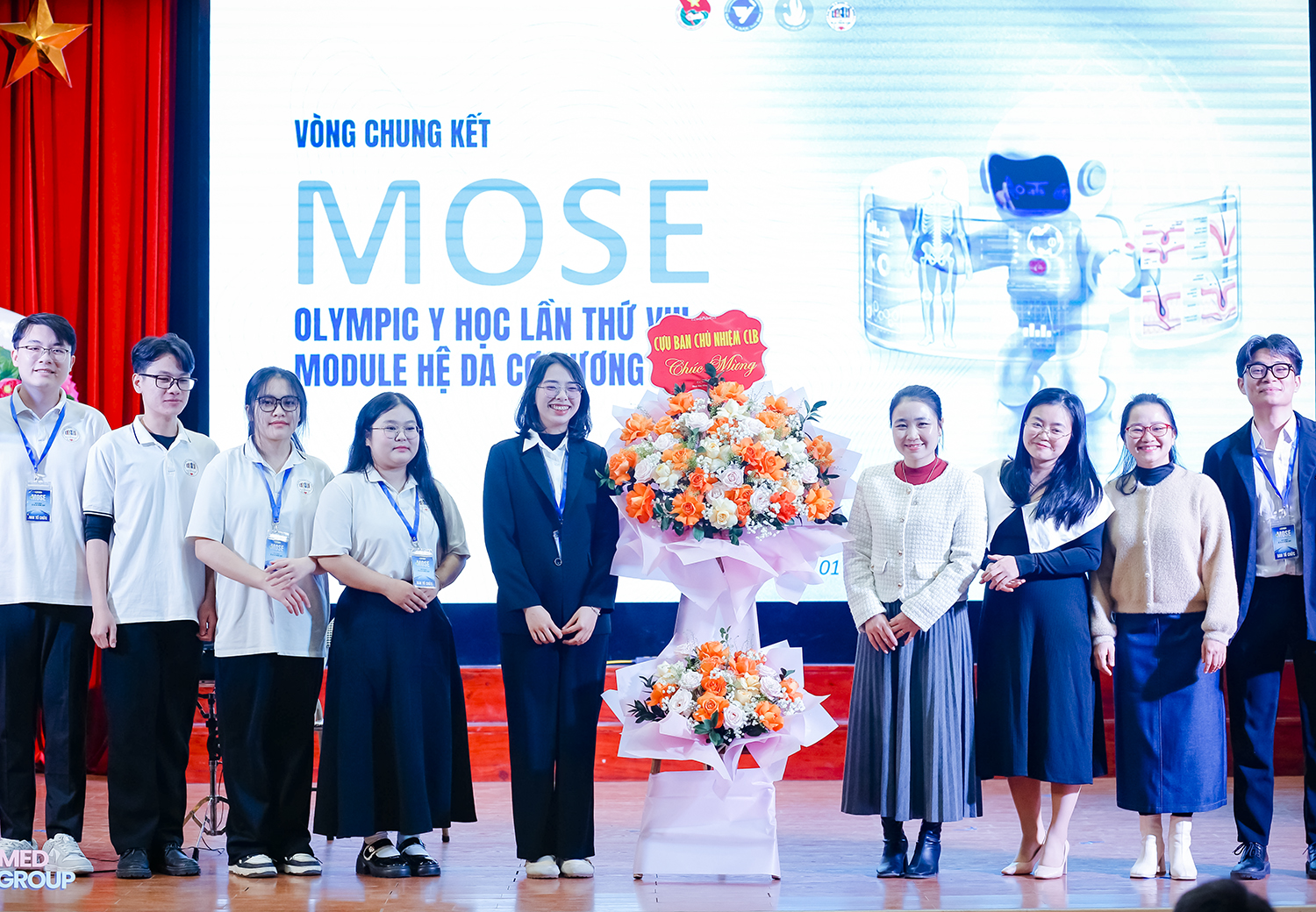 ThS.BSNT Phạm Tuấn Đạt - Bí thư Đoàn thanh niên, Chủ tịch Hội sinh viên tặng hoa chúc mừng