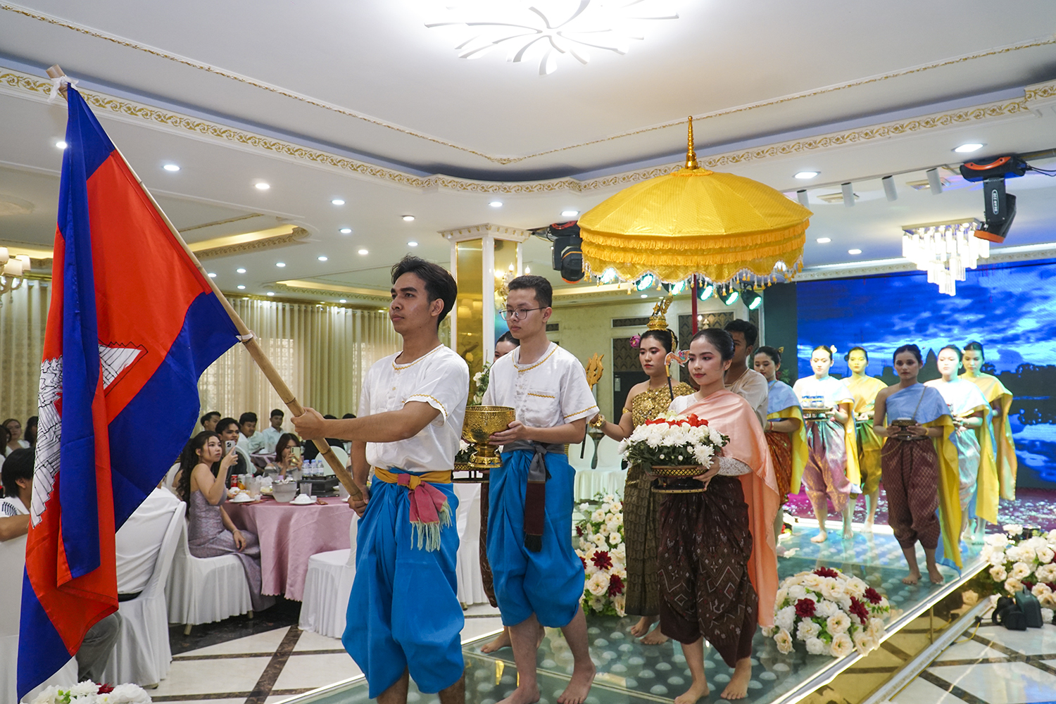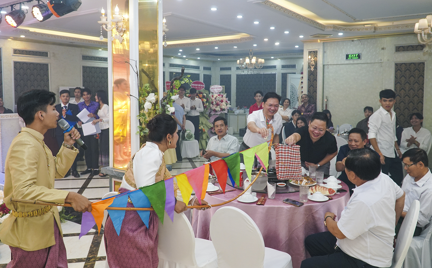 Các đại biểu tặng hoa và quà chúc mừng Đoàn lưu học sinh Campuchia