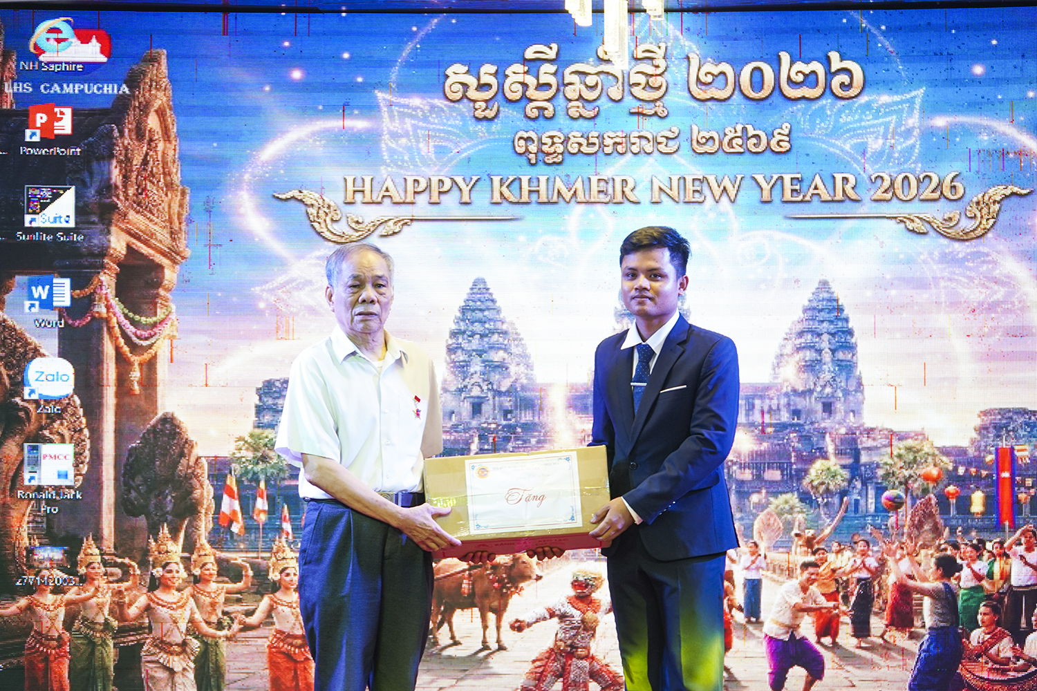 Đại diện lãnh đạo Nhà trường, PGS.TS Nguyễn Quốc Tiến - Bí thư Đảng ủy, Trưởng Ban quản lý lưu học sinh đã tặng hoa, quà và gửi lời chúc mừng năm mới toàn thể 291 lưu học sinh Campuchia đang theo học tại Trường. Thầy Bí thư Đảng ủy động viên các em phấn đấu học tập, rèn luyện, sau này về nước phục vụ tốt sự nghiệp chăm sóc và bảo vệ và nâng cao sức khỏe nhân dân. Với những tình cảm ấy mỗi lưu học sinh sau khi về nước sẽ trở thành những sứ giả của tình đoàn kết và hữu nghị.