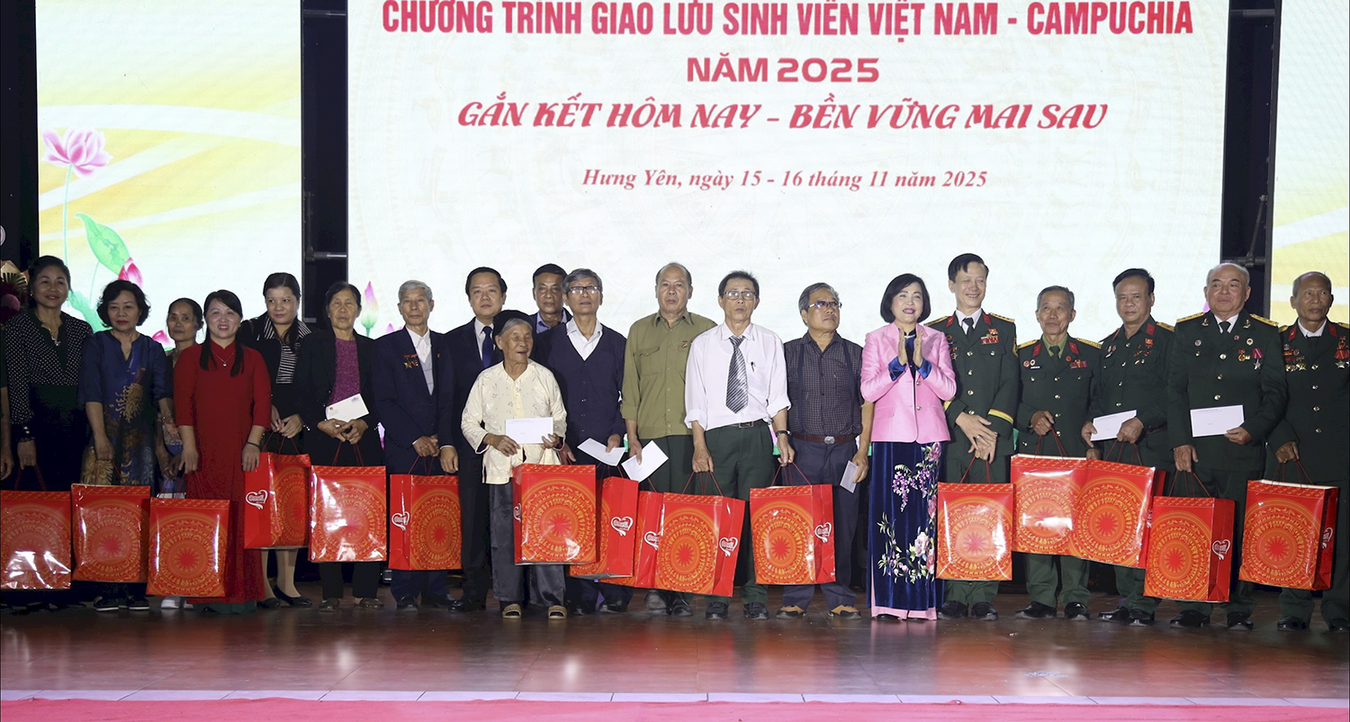 Tại chương trình, Phó Chủ tịch Quốc hội, Chủ tịch Trung ương Hội Hữu nghị Việt Nam – Campuchia Nguyễn Thị Thanh đã trao kỷ niệm chương “Vì tình hữu nghị Việt Nam – Campuchia” cho một số cá nhân; trao quà tri ân thân nhân liệt sỹ, thương binh; tặng quà cho đại diện sinh viên; trao quà hỗ trợ Quỹ Ươm mầm Hữu nghị.