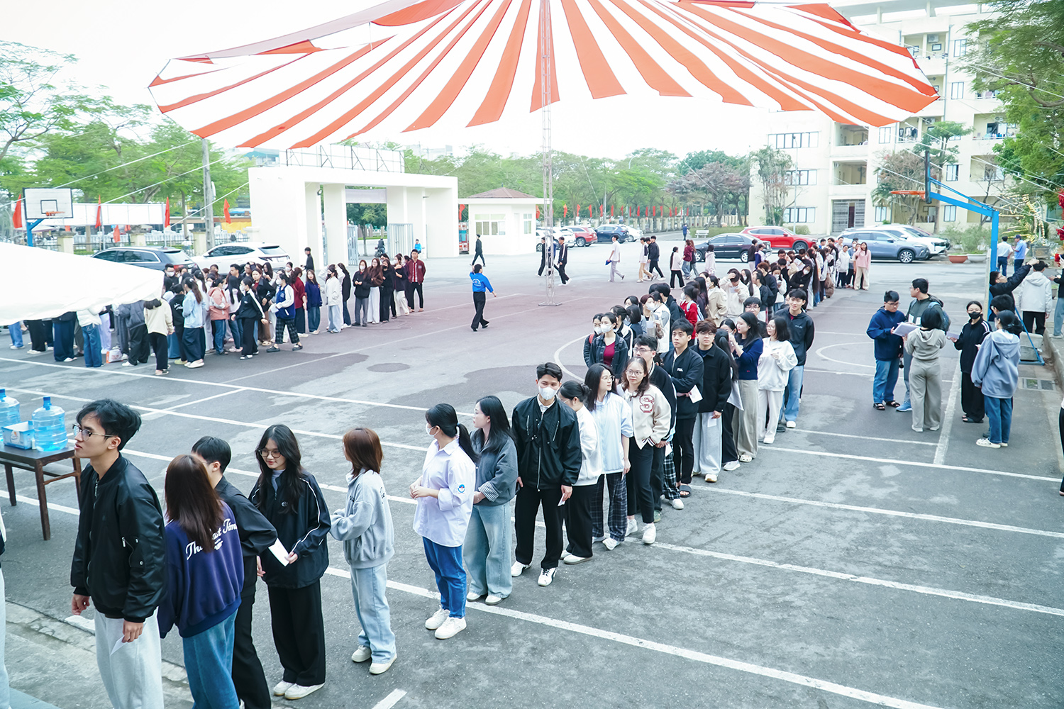 Sinh viên xếp hàng thực hiện quyền và nghĩa vụ công dân