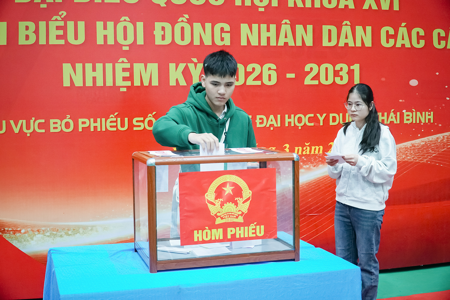 Với tinh thần và nhiệt huyết của tuổi trẻ, cử tri là sinh viên Trường đại học Y Dược Thái đã tích cực, hăng hái tham gia bầu cử đại biểu Quốc hội khóa XVI và đại biểu Hội đồng nhân dân các cấp nhiệm kỳ 2026-2031.