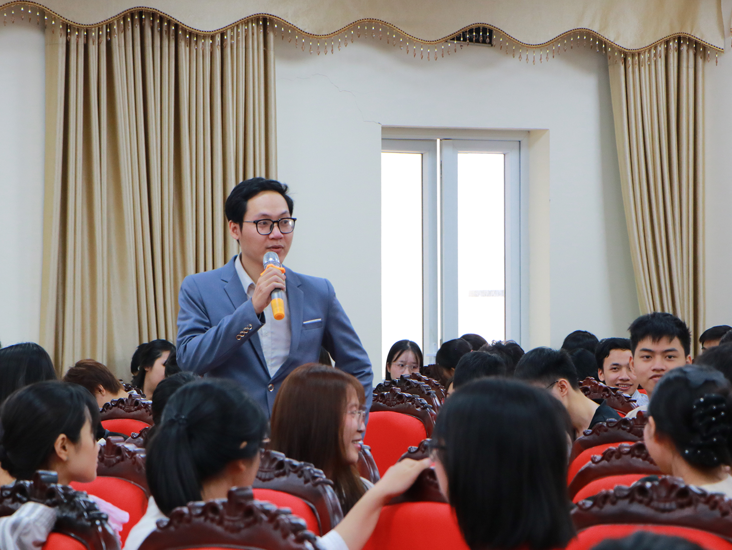 Diễn giả Võ Minh Hoàng giao lưu với sinh viên.