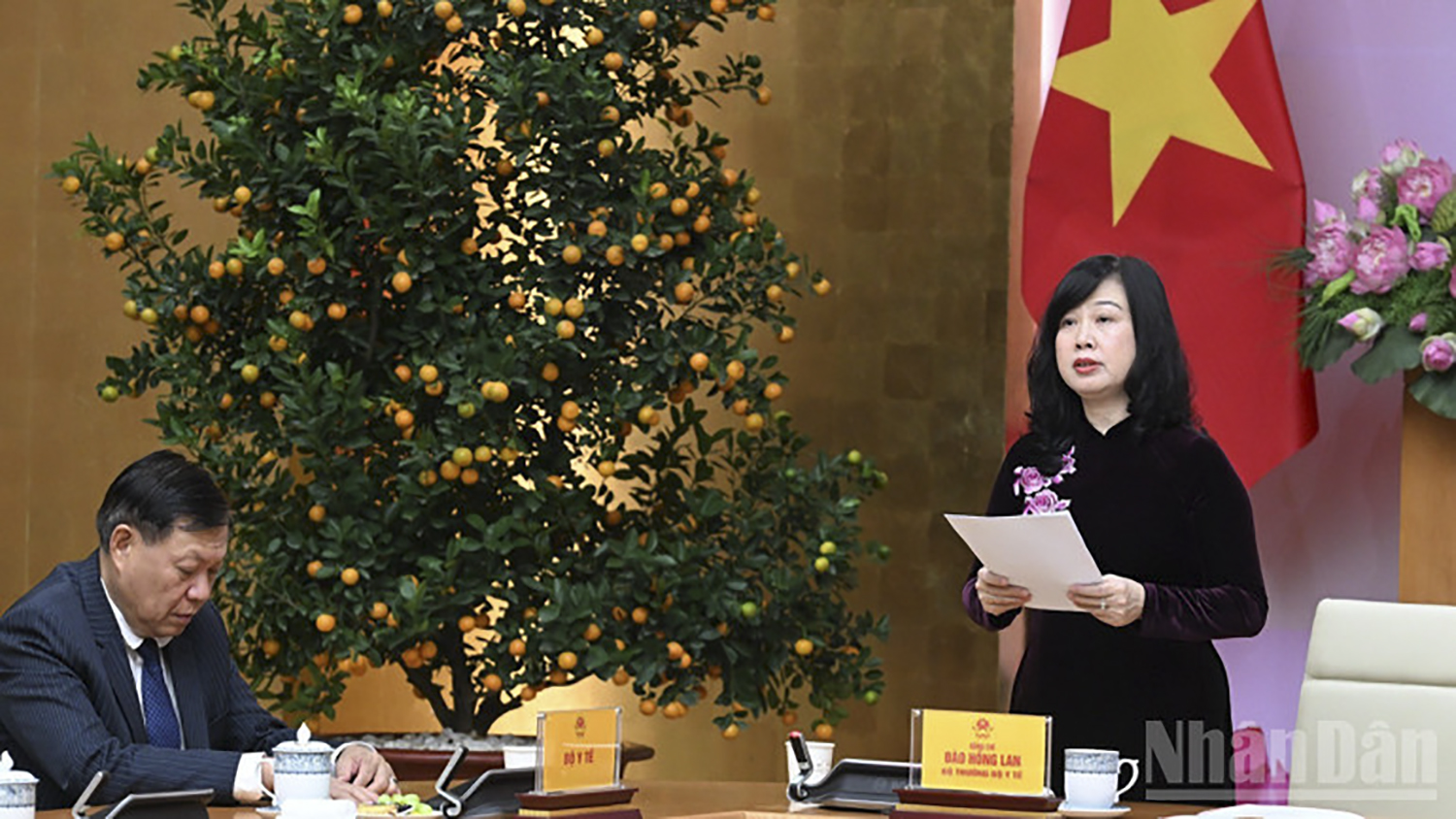 Bộ trưởng Y tế Đào Hồng Lan phát biểu ý kiến tại cuộc gặp mặt. (Ảnh: TRẦN HẢI)
