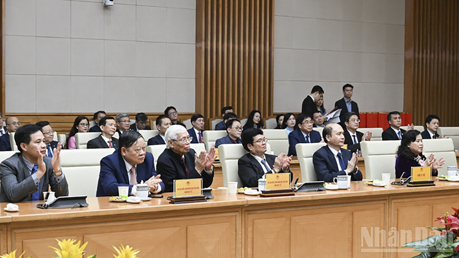 Lãnh đạo một số bộ, ngành Trung ương tham dự cuộc gặp mặt. (Ảnh: TRẦN HẢI)