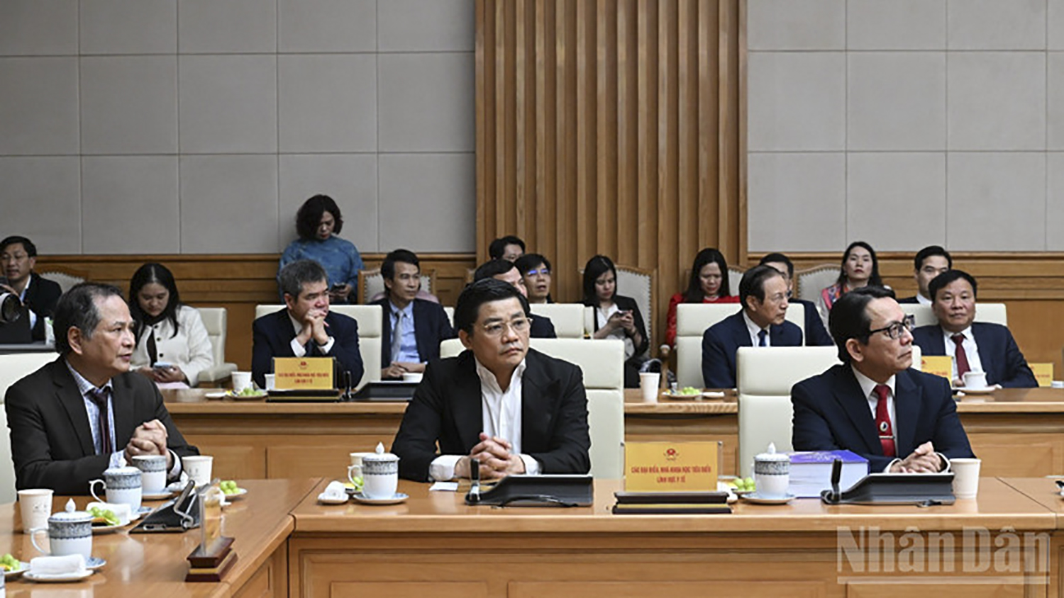 Chiều 24/2, tại Trụ sở Chính phủ,Thủ tướng Phạm Minh Chính;gặp mặt đại diện các nhà khoa học tiêu biểu lĩnh vực y tế và Giám đốc các bệnh viện trung ương nhân dịp 71 năm Ngày Thầy thuốc Việt Nam (27/2). Cùng dự có Phó Thủ tướng Lê Thành Long.
