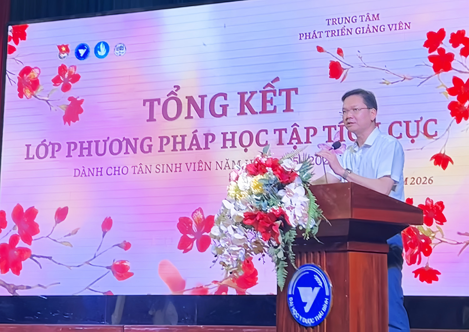 Chiều ngày 22/4/2026, tại Trường Đại học Y Dược Thái Bình diễn ra lễ tổng kết Lớp Phương pháp Học tập tích cực dành cho tân sinh viên năm học 2025 – 2026 đợt II. Chương trình không chỉ đánh dấu một hành trình học tập ý nghĩa mà còn là dịp để sinh viên thể hiện sự chuyển biến rõ nét trong tư duy và phương pháp học tập.