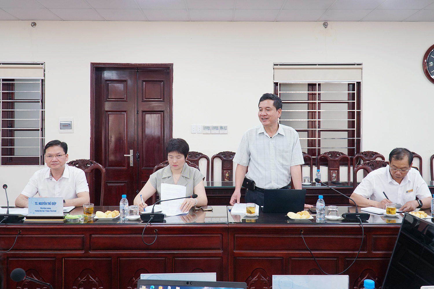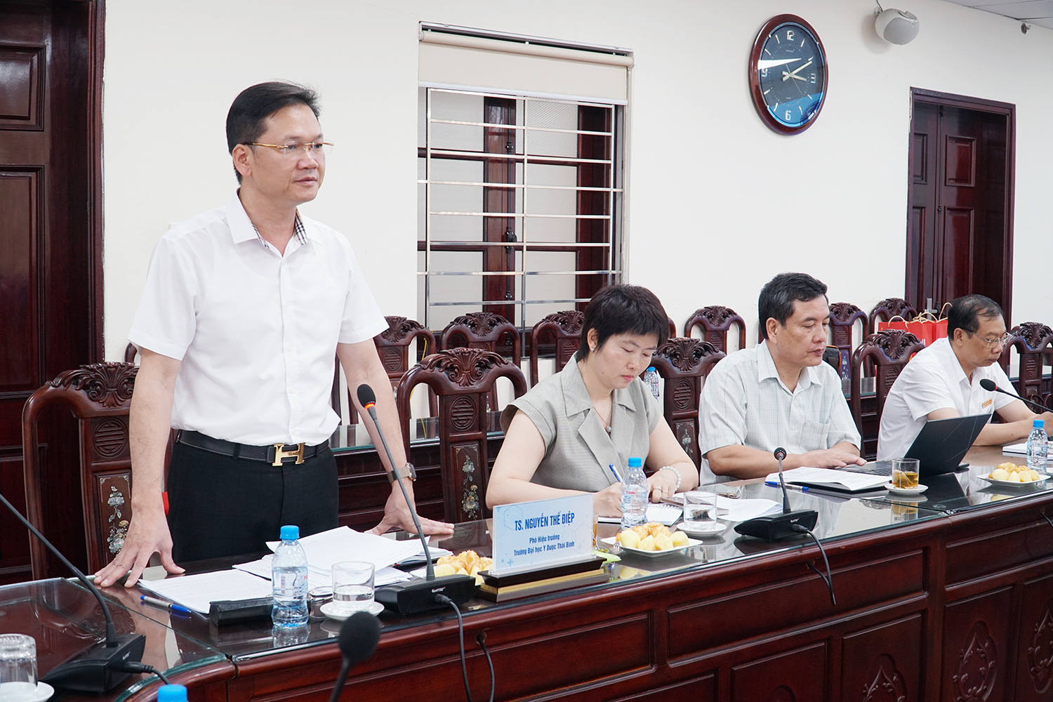 TS Nguyễn Thế Điệp - Phó Hiệu trưởng Trường Đại học Y Dược Thái Bình phát biểu tại buổi làm việc.
