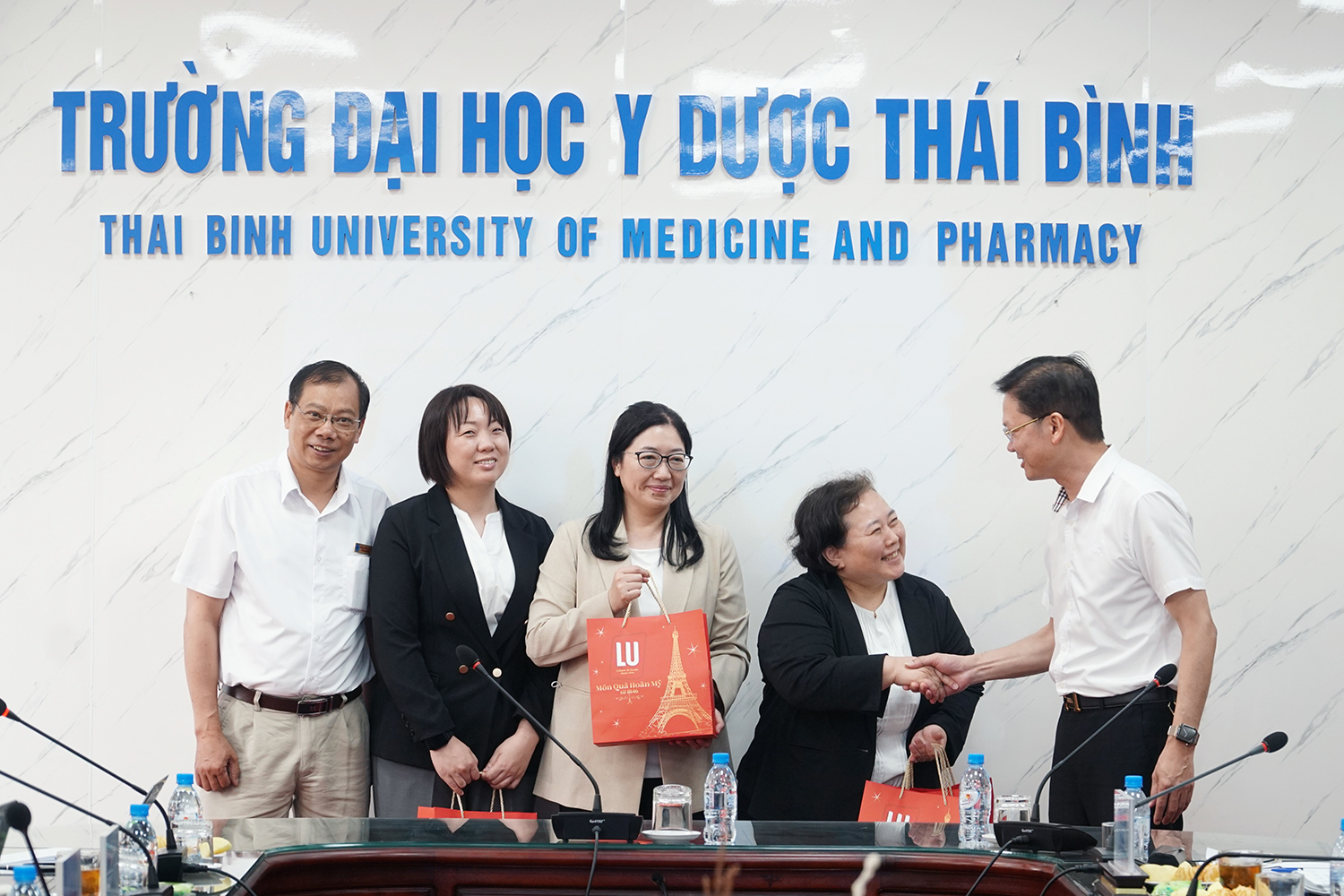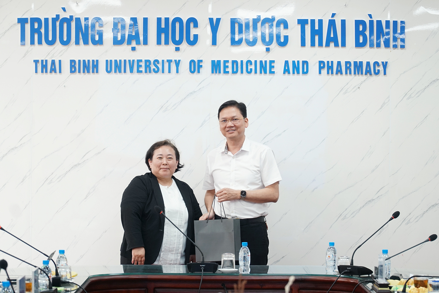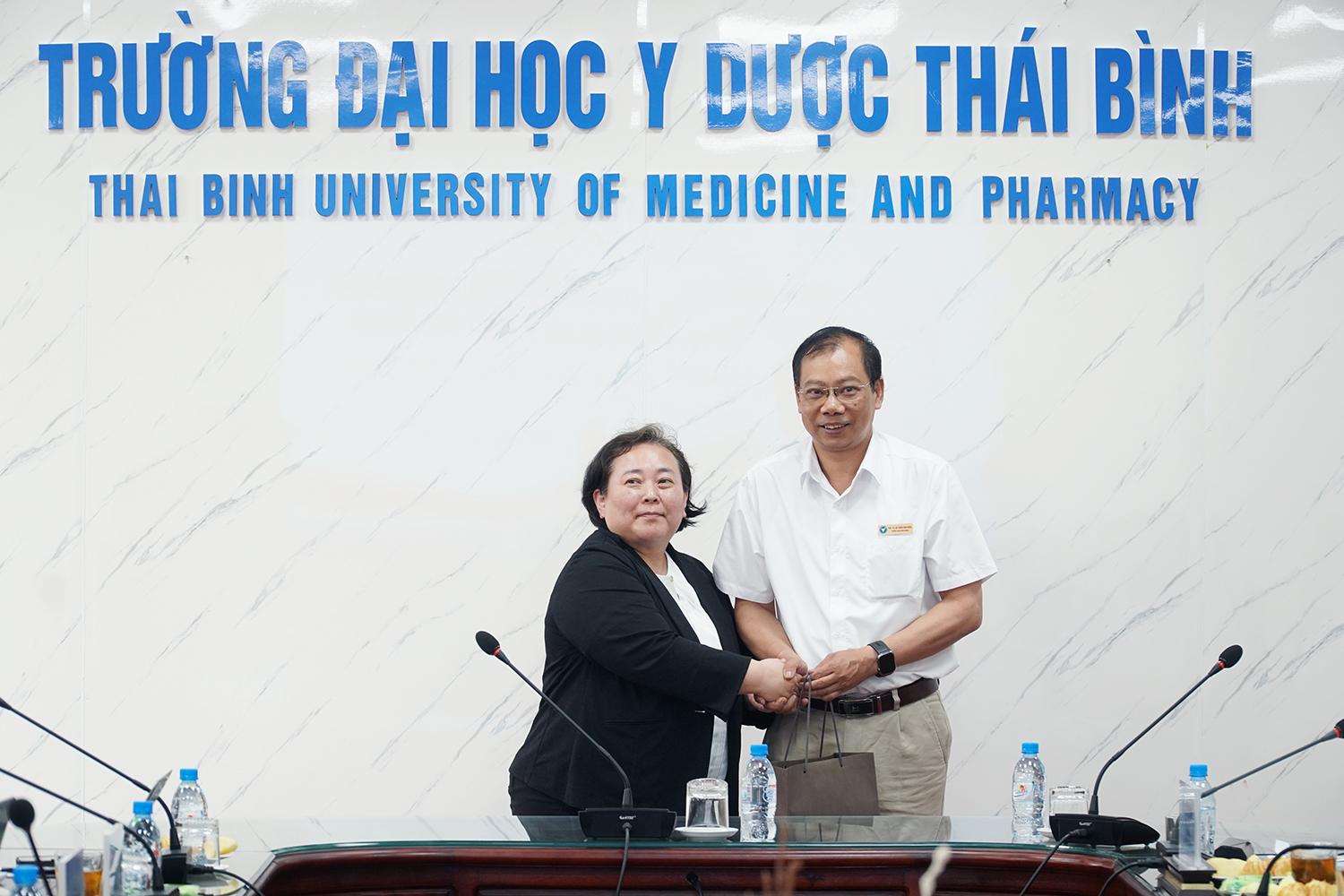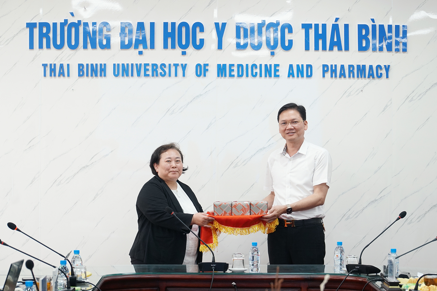 Tiếp và làm việc với đoàn, về phía Trường Đại học Y Dược Thái Bình có TS Nguyễn Thế Điệp - Phó Hiệu trưởng cùng đại diện phòng Hợp tác quốc tế; phòng Quản lý Đào tạo đại học; khoa Điều dưỡng và một số phòng, ban liên quan.