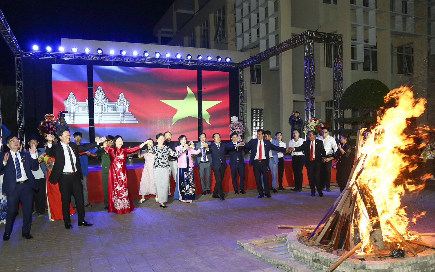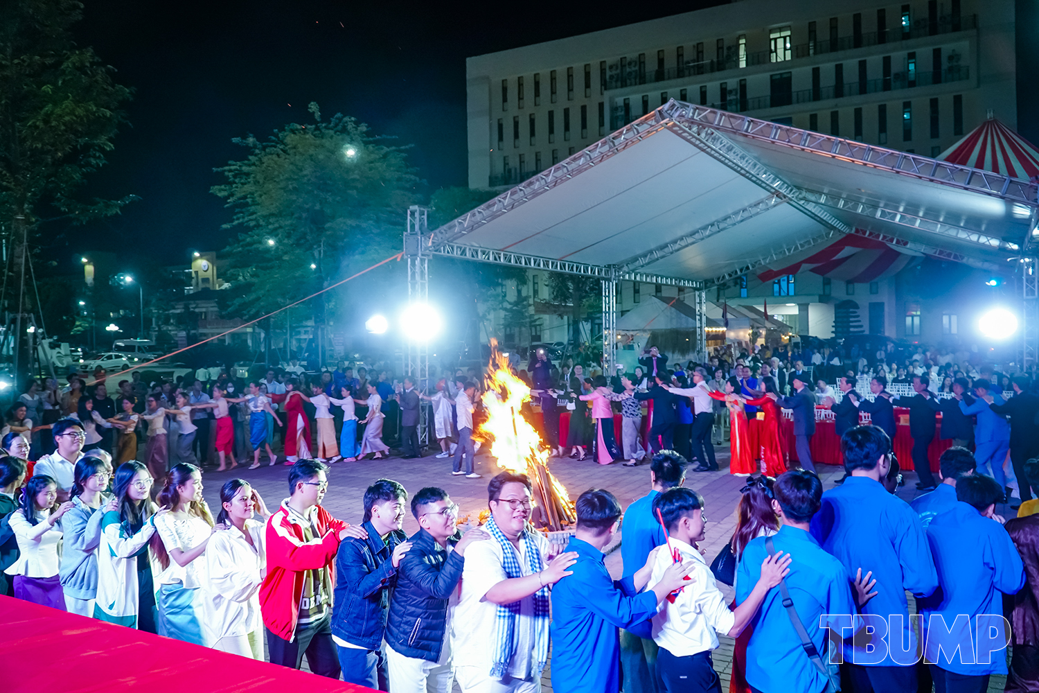 Không khí giao lưu thêm sôi nổi với các tiết mục múa, nhảy và các bài hát về tình đoàn kết, hữu nghị do sinh viên các nước: Việt Nam, Campuchia, Lào dàn dựng, biểu diễn mang màu sắc trẻ trung nhưng đậm bản sắc dân tộc truyền thống. Với điểm nhấn của chương trình là màn đốt lửa trại, nơi đại biểu và sinh viên quốc tế, sinh viên Việt Nam cùng hát vang "Việt Nam - Campuchia Samaki", "Nối vòng tay lớn", thể hiện tinh thần đoàn kết, hữu nghị, đúng với chủ đề của Chương trình “Đoàn kết hôm nay – Gắn bó mai sau”.