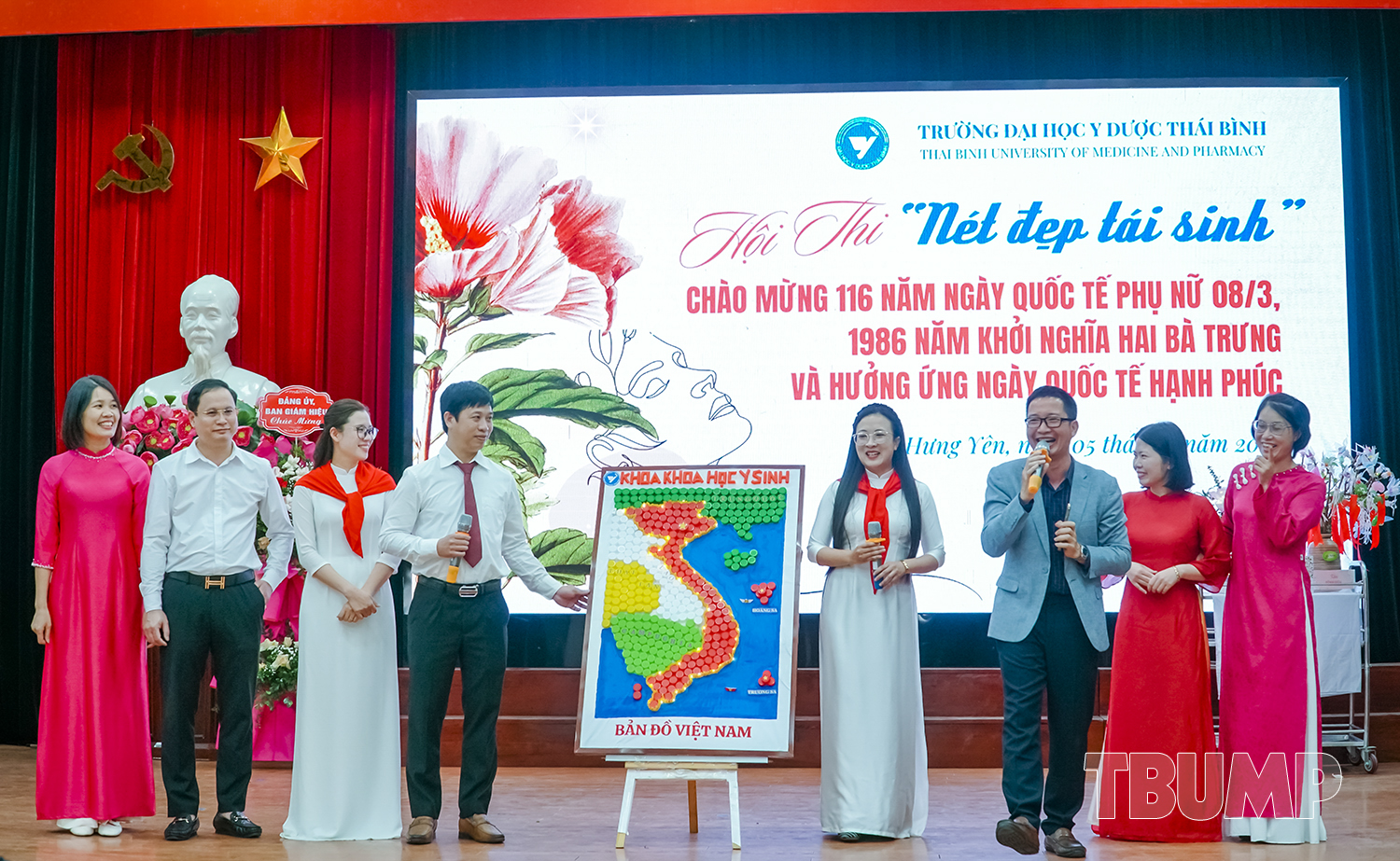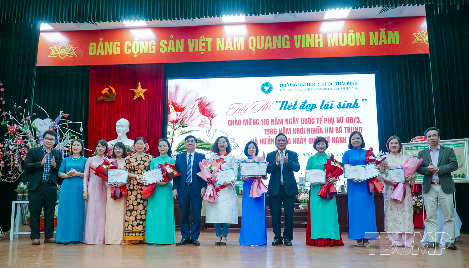 Chương trình kỷ niệm 116 năm ngày Quốc tế Phụ nữ, 1986 năm khởi nghĩa Hai Bà Trưng, hưởng ứng ngày Quốc tế hạnh phúc 20/3 và Hội thi “Nét đẹp tái sinh” đã kết thúc thành công tốt đẹp. Đây là dịp để mỗi chị em nhận thức rõ hơn vai trò, trách nhiệm của mình trong thời kỳ hội nhập và phát triển. Phụ nữ Việt Nam hiện đại không chỉ đẹp về ngoại hình mà còn mạnh mẽ, thông minh, tự tin và bản lĩnh. Họ đang góp phần thay đổi xã hội theo hướng tiến bộ hơn, góp phần xây dựng môi trường làm việc, môi trường sống Xanh - Sạch - Đẹp và khẳng định vai trò không thể thay thế trong mọi lĩnh vực. Chương trình cũng mang đến một luồng sinh khí mạnh mẽ, nâng cao tinh thần lao động, cống hiến và gắn bó xây dựng, phát triển Trường Đại học Y Dược Thái Bình./.
