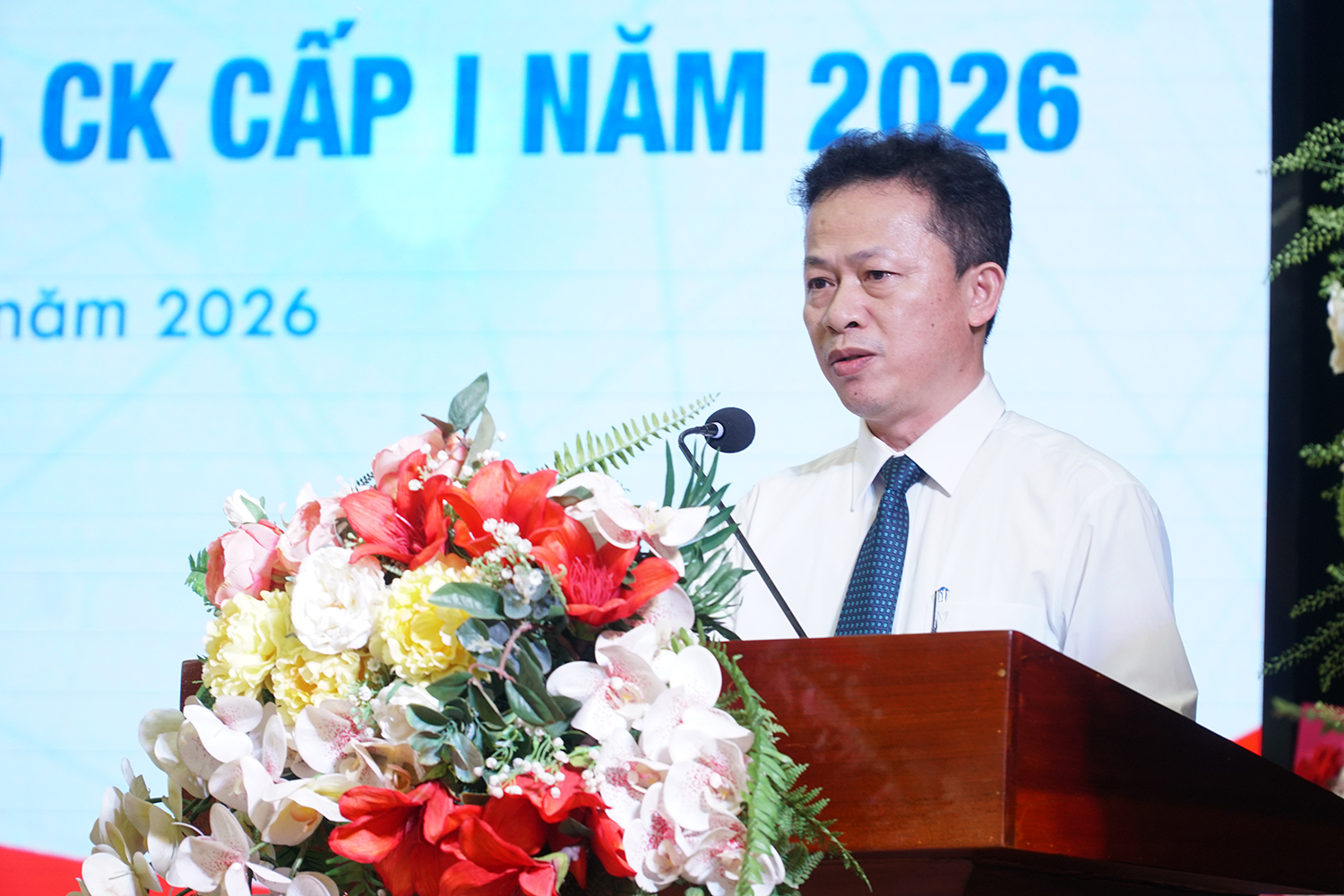 Tân TS Phạm Văn Mẫn đại diện các tân Tiến sĩ, Thạc sĩ, bác sĩ CK cấp II, BSNT, bác sĩ CK cấp I phát biểu tại buổi lễ.