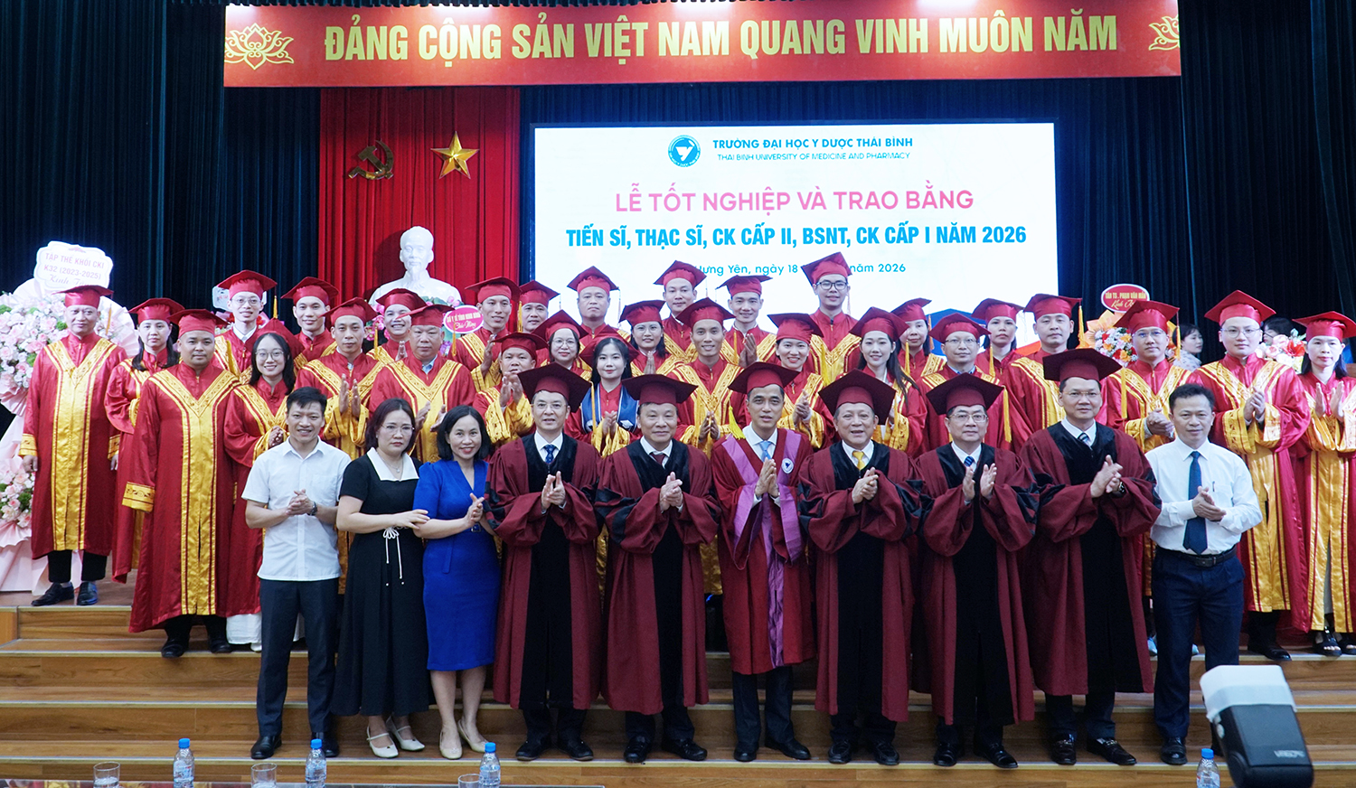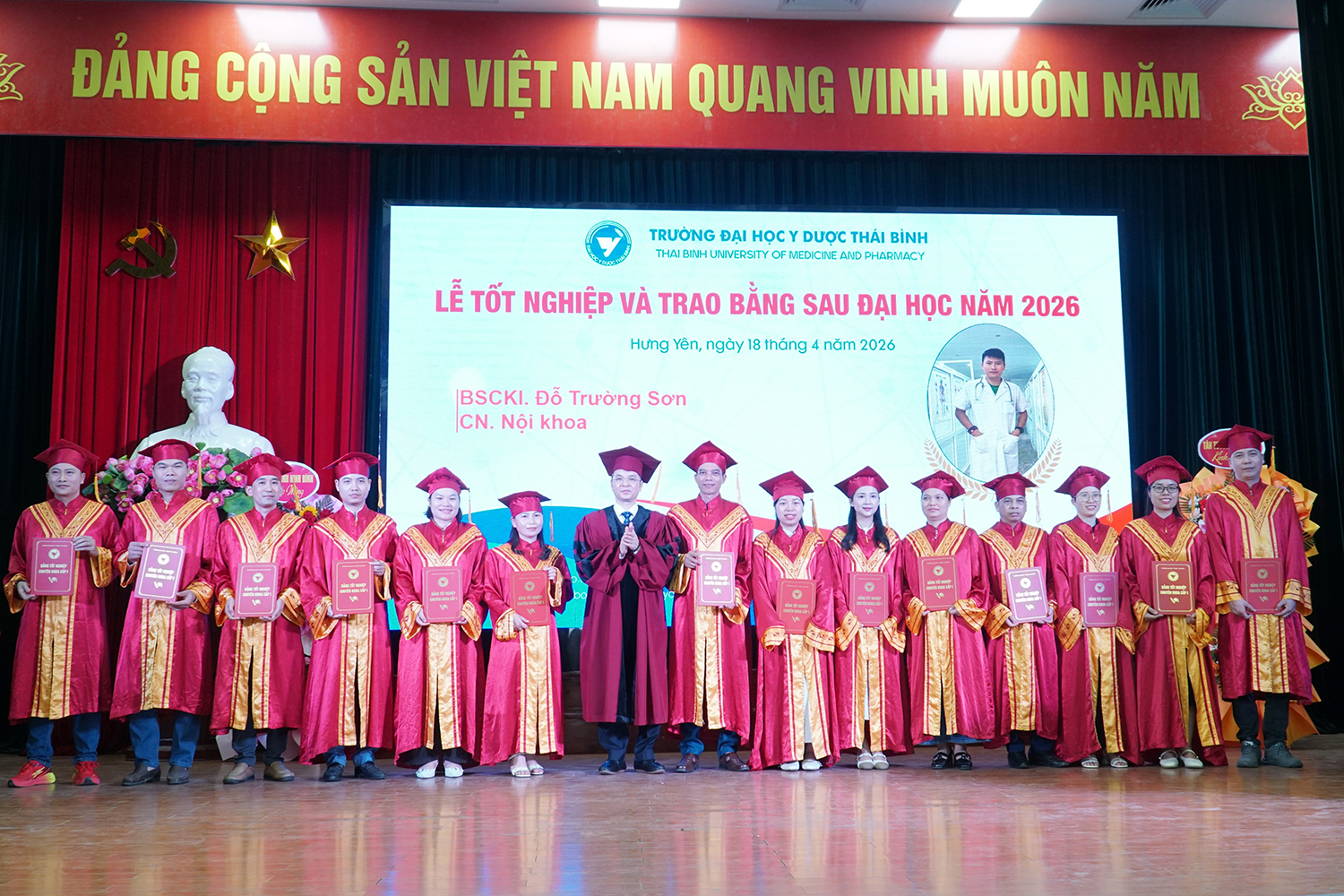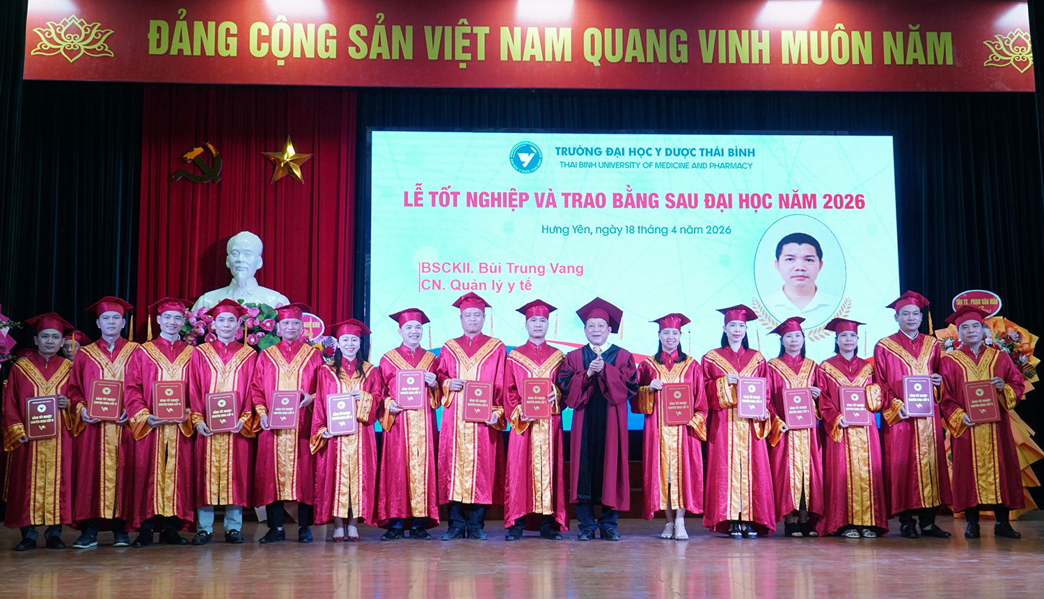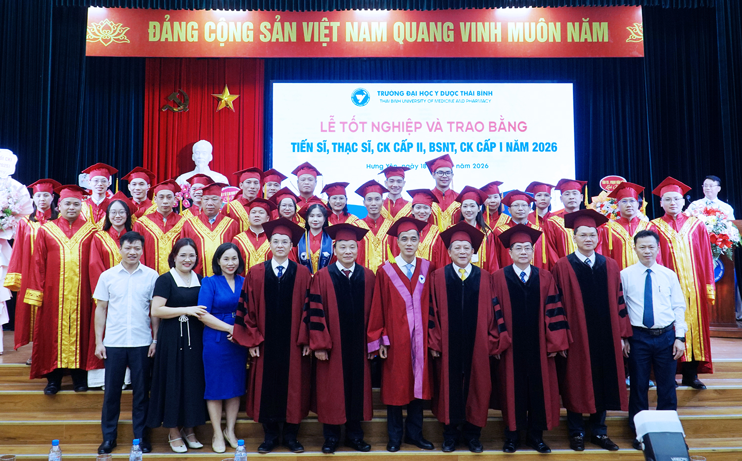 Lễ tốt nghiệp và trao bằng sau đại học năm 2026 không chỉ ghi nhận thành quả học tập của các nghiên cứu sinh, học viên, mà còn tiếp tục khẳng định vai trò đầu tàu của Trường Đại học Y Dược Thái Bình trong đào tạo sau đại học ngành y tế. Với bề dày truyền thống, quy mô đào tạo lớn và không ngừng nâng cao chất lượng, Trường Đại học Y Dược Thái Bình đã, đang và sẽ tiếp tục là địa chỉ tin cậy trong đào tạo nguồn nhân lực chất lượng cao, đáp ứng yêu cầu phát triển của ngành y tế Việt Nam trong giai đoạn mới./.