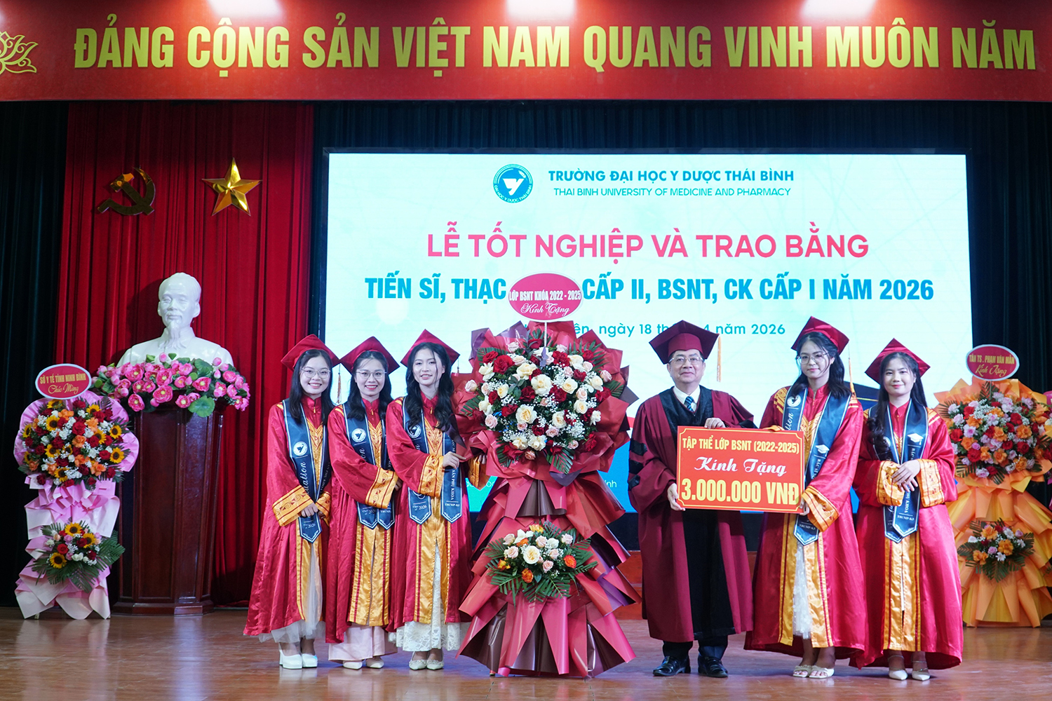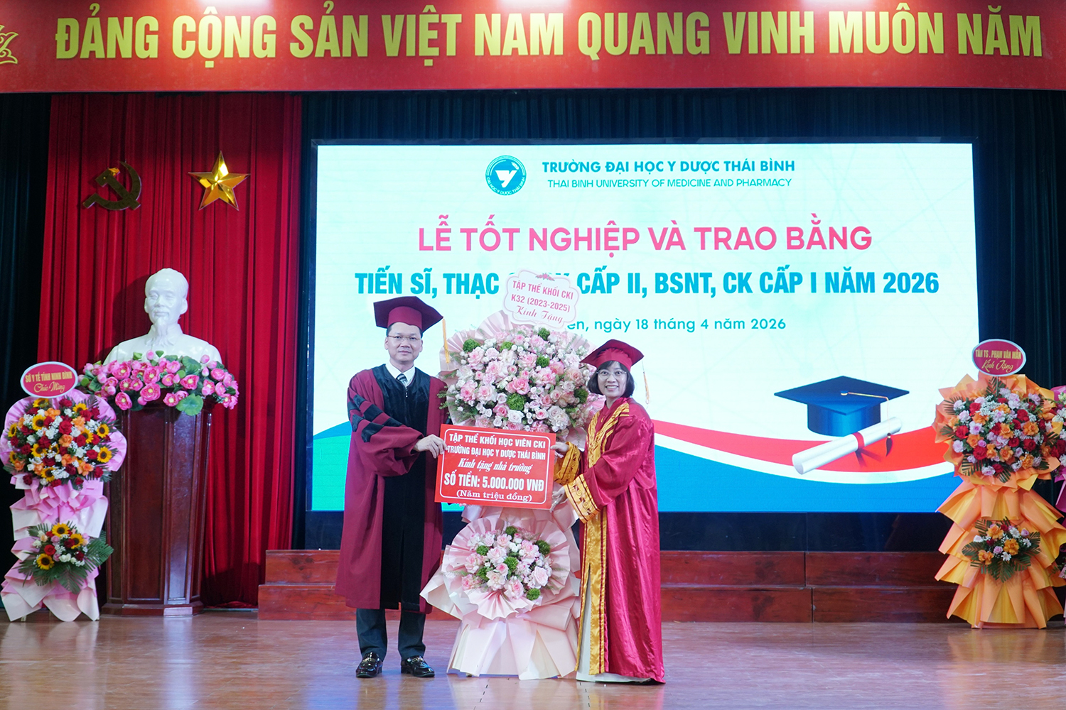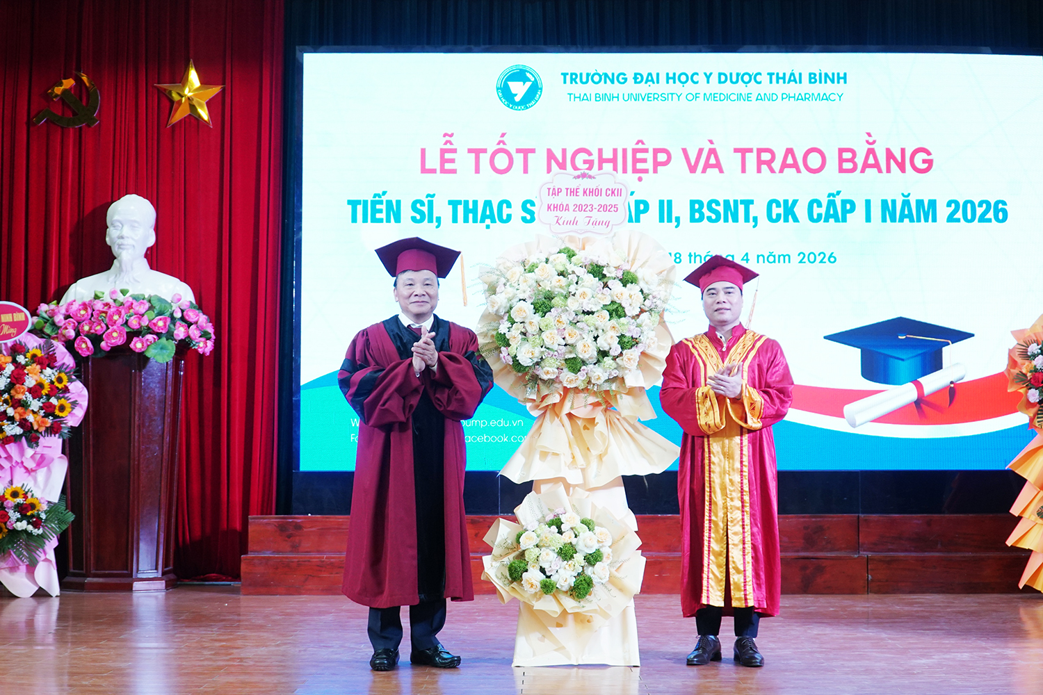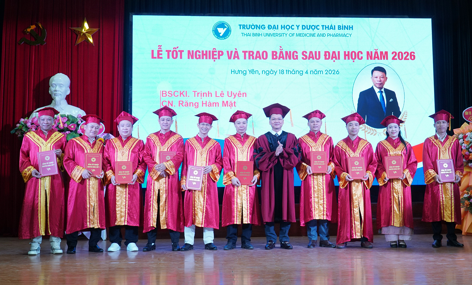 Lễ tốt nghiệp và trao bằng sau đại học năm 2026 không chỉ ghi nhận thành quả học tập của các nghiên cứu sinh, học viên, mà còn tiếp tục khẳng định vai trò đầu tàu của Trường Đại học Y Dược Thái Bình trong đào tạo sau đại học ngành y tế. Với bề dày truyền thống, quy mô đào tạo lớn và không ngừng nâng cao chất lượng, Trường Đại học Y Dược Thái Bình đã, đang và sẽ tiếp tục là địa chỉ tin cậy trong đào tạo nguồn nhân lực chất lượng cao, đáp ứng yêu cầu phát triển của ngành y tế Việt Nam trong giai đoạn mới./.